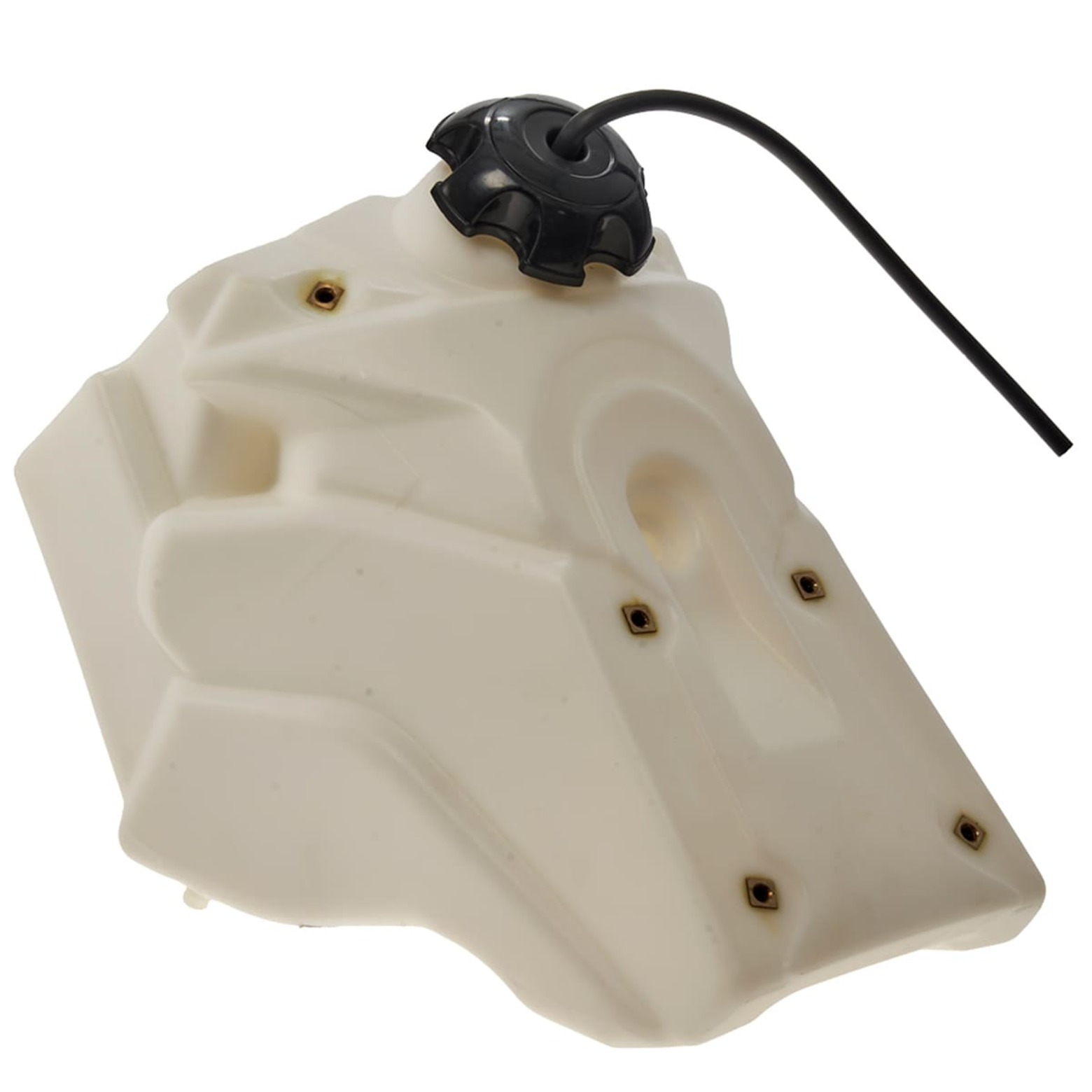 Топливный бак белого (полупрозрачного) цвета из пластика под стиль KTM SX85. Обеспечивает простой визуальный контроль уровня топлива. Изготовлен из прочного материала, устойчивого к ударам и вибрациям, отлично подходит для замены штатного бака на питбайках и кроссовых мотоциклах.