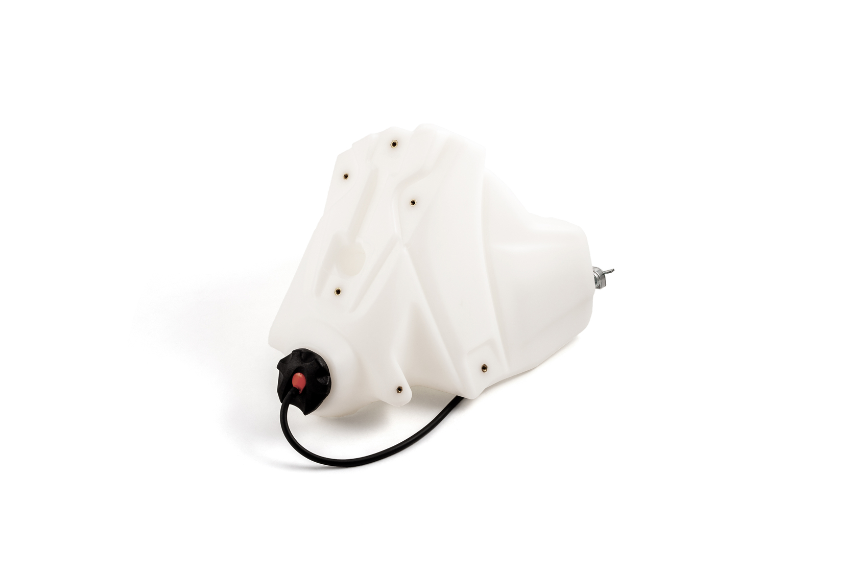 Топливный бак белого цвета для эндуро мотоциклов с рамой типа KTM 2017-2023 (К8). Выполнен из прочного пластика высокого качества, устойчивого к ударам и воздействию топлива. Идеально подходит для замены штатного бака при тюнинге, ремонте или реставрации техники. Совместим с большим перечнем эндуро моделей на базе рам КТМ нового поколения.