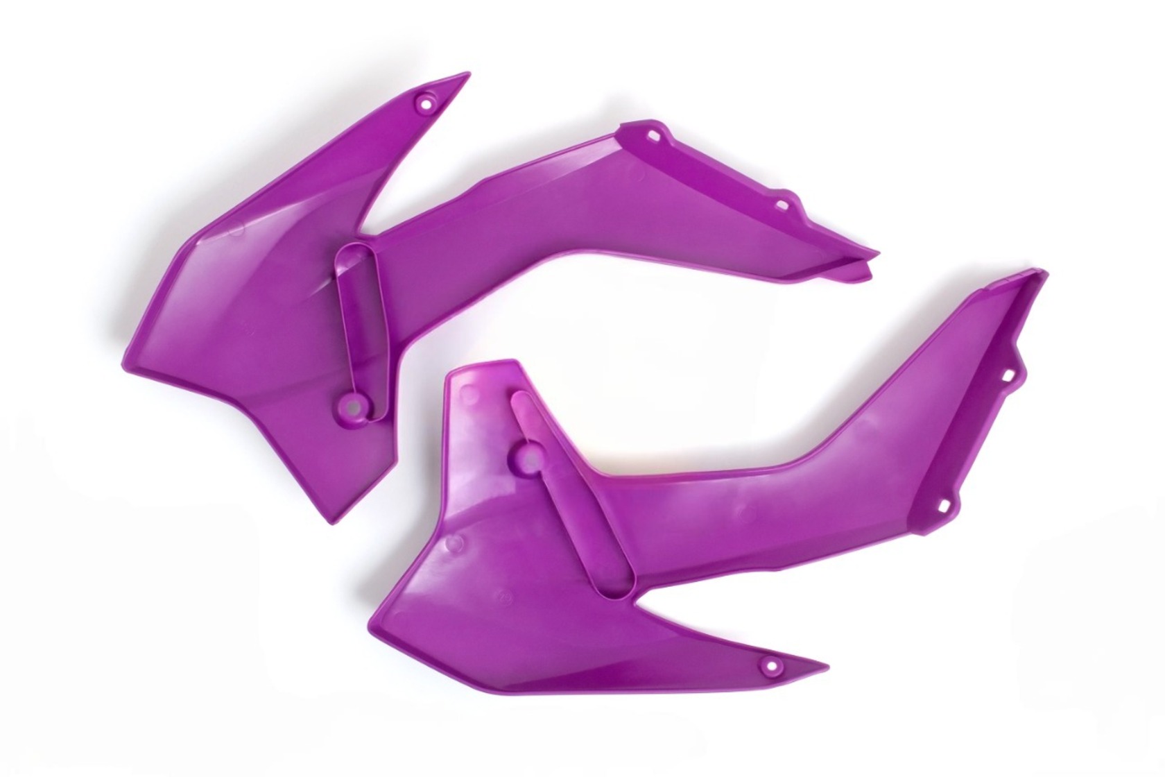 Пара фиолетовых передних обтекателей для мотоциклов KTM SX85 2013-2016 года, а также для аналогичных китайских моделей на раме K5 (таких как Kayo K1, BRZ X5 и др). Изготовлены из высококачественного ударопрочного пластика под тип KTM SX85. Полный аналог оригинальной детали KTM с артикулом 4710805400004. Обеспечивают отличную защиту и стильный внешний вид, легко устанавливаются на штатные крепления без доработок.