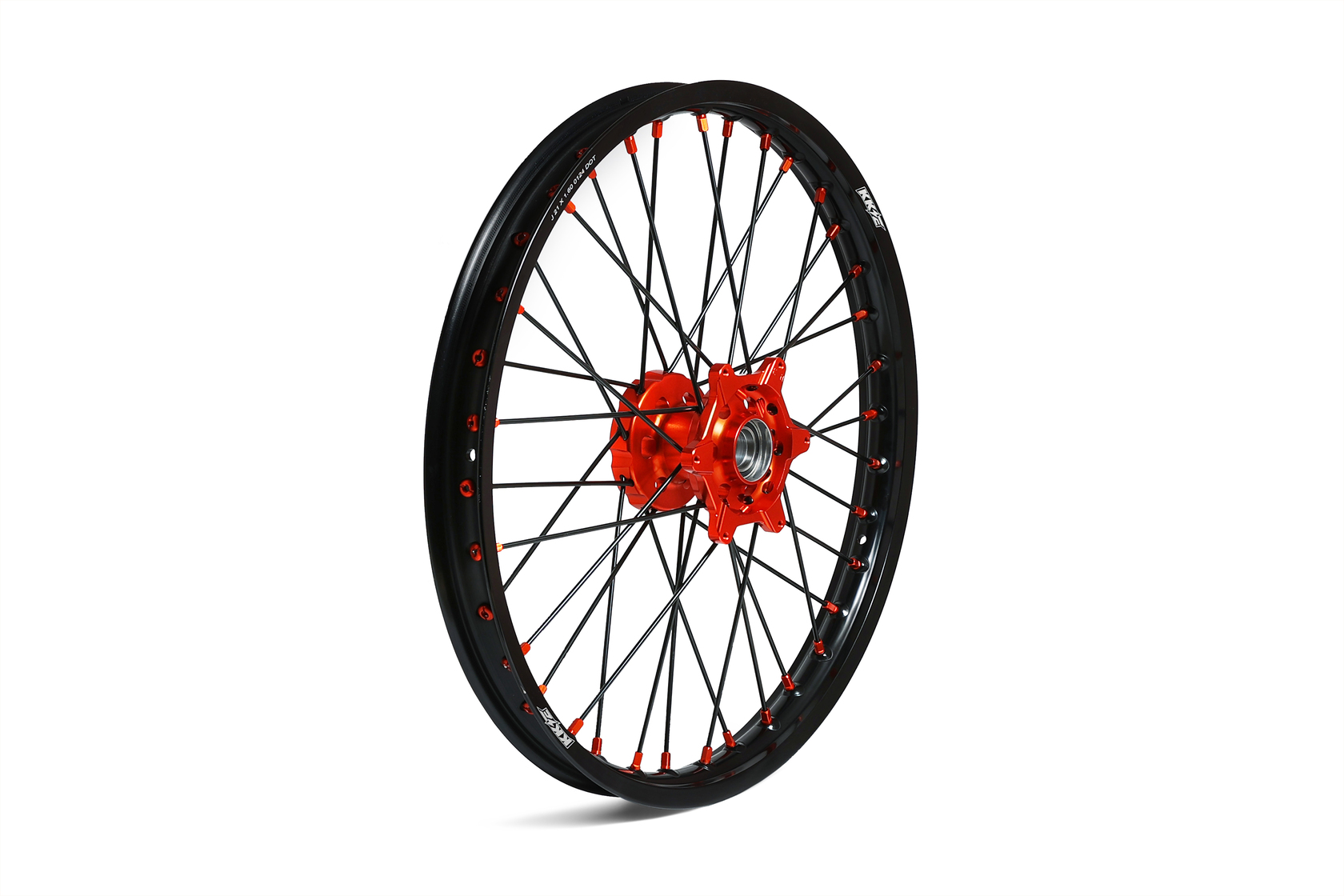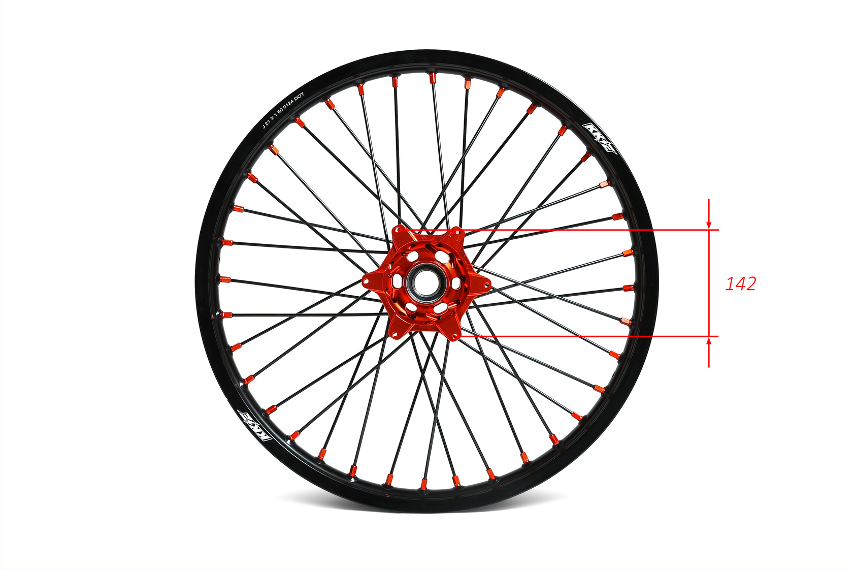 Передний колесный диск KKE ― один из лучших китайских вариантов для эндуро-мотоциклов, подходит для BRZ X5M, SX8, KTM 2016–2025 модельных годов. Отличается малым весом, высокой прочностью и долговечностью благодаря премиальным материалам.Обод выполнен из алюминия 7071 (черный цвет), облегчённая ступица ― из алюминия 7075 (оранжевый цвет). Усиленные стальные спицы диаметром 4 мм выдерживают высокие нагрузки при эксплуатации в тяжёлых условиях.