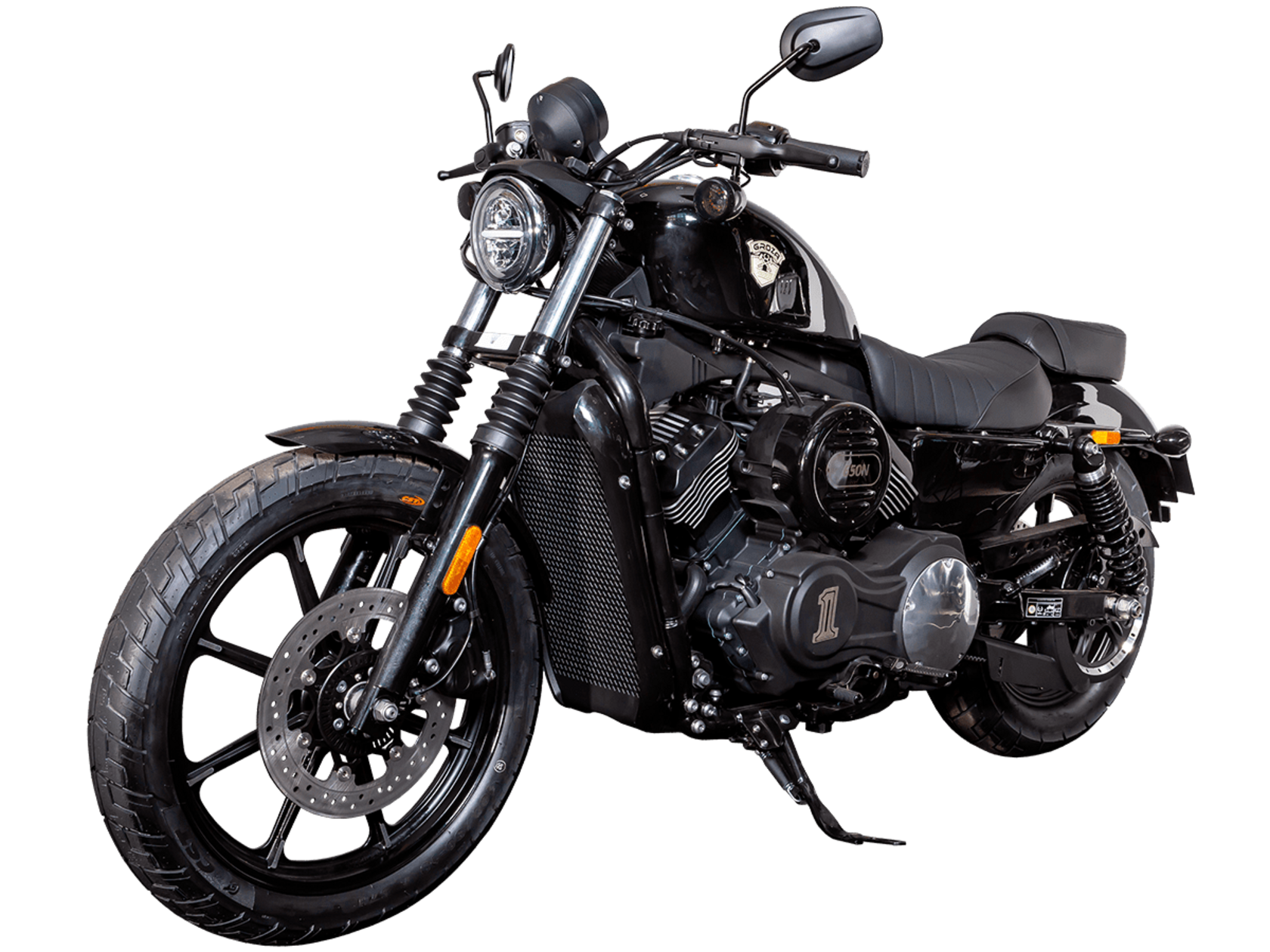 GROZA XS650 – шикарный круизёр, идеальный как для езды по мегаполису, так и для поездок по загородным дорогам. Его дизайн исполнен в классическом стиле, соответствующем всем канонам данного типа мотоциклов.Двухцилиндровый V-образный двигатель объёмом 650 см3 выдаёт внушительные 53 л.с. и при высоких показателях динамики и отличном крутящем моменте способен разгонять аппарат до 160 км/ч. Инжекторный впрыск топлива с инжектором DELPHI увеличивает топливную экономичность, а также позволяет добиться высокой приёмистости и неприхотливости агрегата. Привод на ведущее колесо осуществляется ремнём знаменитой марки USA Gates. Жидкостная система охлаждения не допустит перегрева мотора даже при самом агрессивном вождении.На аппарат установлена 6-ступенчатая механическая коробка передач с классической схемой “1-N-2-3-4-5-6”. Мотоцикл оснащён литыми алюминиевыми дисками диаметром 19 дюймов спереди и 17 дюймов сзади. С неровностями дороги эффективно справляются телескопическая вилка спереди и два газонаполненных амортизатора сзади. Задние амортизаторы являются регулируемыми, что обеспечивает лёгкую перестройку на различные режимы езды. Эффективное и безопасное замедление с любых скоростей обеспечивают гидравлические дисковые тормоза с ABS спереди и сзади.Несмотря на жидкостное охлаждение, двигатель имеет декоративные рёбра на цилиндрах, что придаёт ему очень привлекательный вид в общей композиции мотоцикла.XS650 сочетает в себе отличные технические характеристики, комфорт и надёжность, что позволяет вам ощутить настоящую свободу на любой дороге.