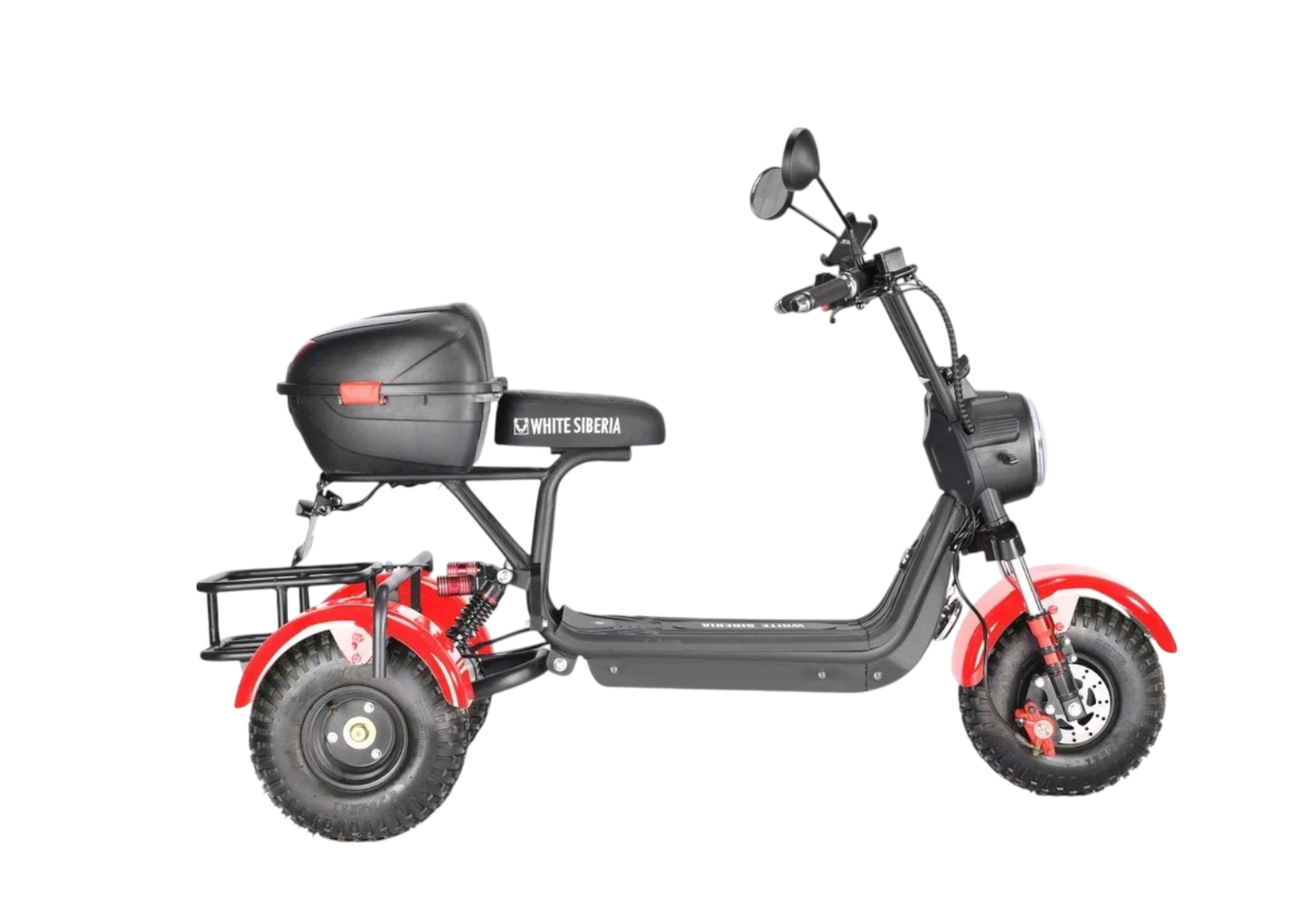Электротрицикл WHITE SIBERIA TRIKE MINI RED 1500W - "мини" трицикл. Безопасный и надежный, он станет незаменимым помощником для людей, постоянно или сезонно проживающих за городом, а за счёт своей компактности и в городской среде.Такой транспорт будет полезен для перемещения по территории коттеджного поселка или на даче, поездок к ближайшему магазину, прогулок. Он понравится всем, но особенно полезен будет пожилым людям или с ограниченными возможностями. У трицикла удобная низкая посадка, он прост в управлении и неприхотлив в эксплуатации.Преимущества:Не нужно регистрировать в ГИБДД, а для управления достаточно водительское удостоверение любой категории;