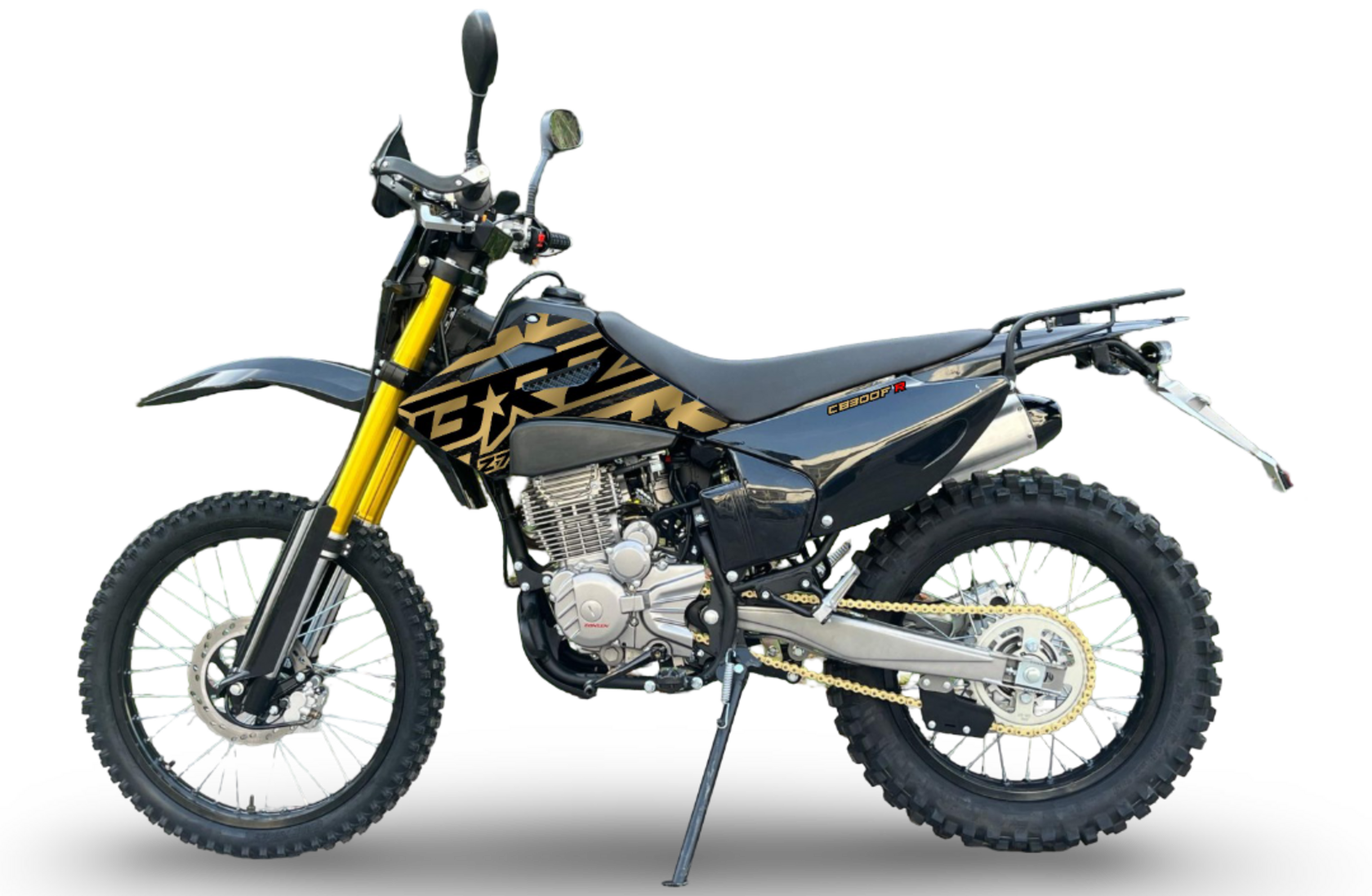 Мотоцикл BRZ Z7 CB300F R - мотоцикл двойного назначения. Он отлично подходит для эндуро, а также для утилитарных функций.Мотор на BRZ Z7 CB300F R - Zongshen ZS172FMM объемом 300 см3. Это уже проверенный временем надежный мотор с отличными низами. Работает он в паре с карбюратором NIBBI Racing PE30, который полноценно раскрывает потенциал двигателя.Мотоцикл BRZ Z7 CB300F R является среднеразмерным, что делает его удобным для большинства райдеров.На BRZ Z7 CB300F R установлена подвеска MNT c регулировками, что дает вам возможность настроить подвеску под ваши требования. Задний амортизатор с прогрессией.BRZ Z7 CB300F R оснащен всем самым необходимым - рычаги "неломайки", защита рук, панель приборов, мощная LED фара. Также с завода стоит мягкая резина Gema на алюминиевых ободах.Если вам нужен надежный эндуро, для поездок по лесным чащам или на рыбалку, то BRZ Z7 CB300F R станет верным товарищем!