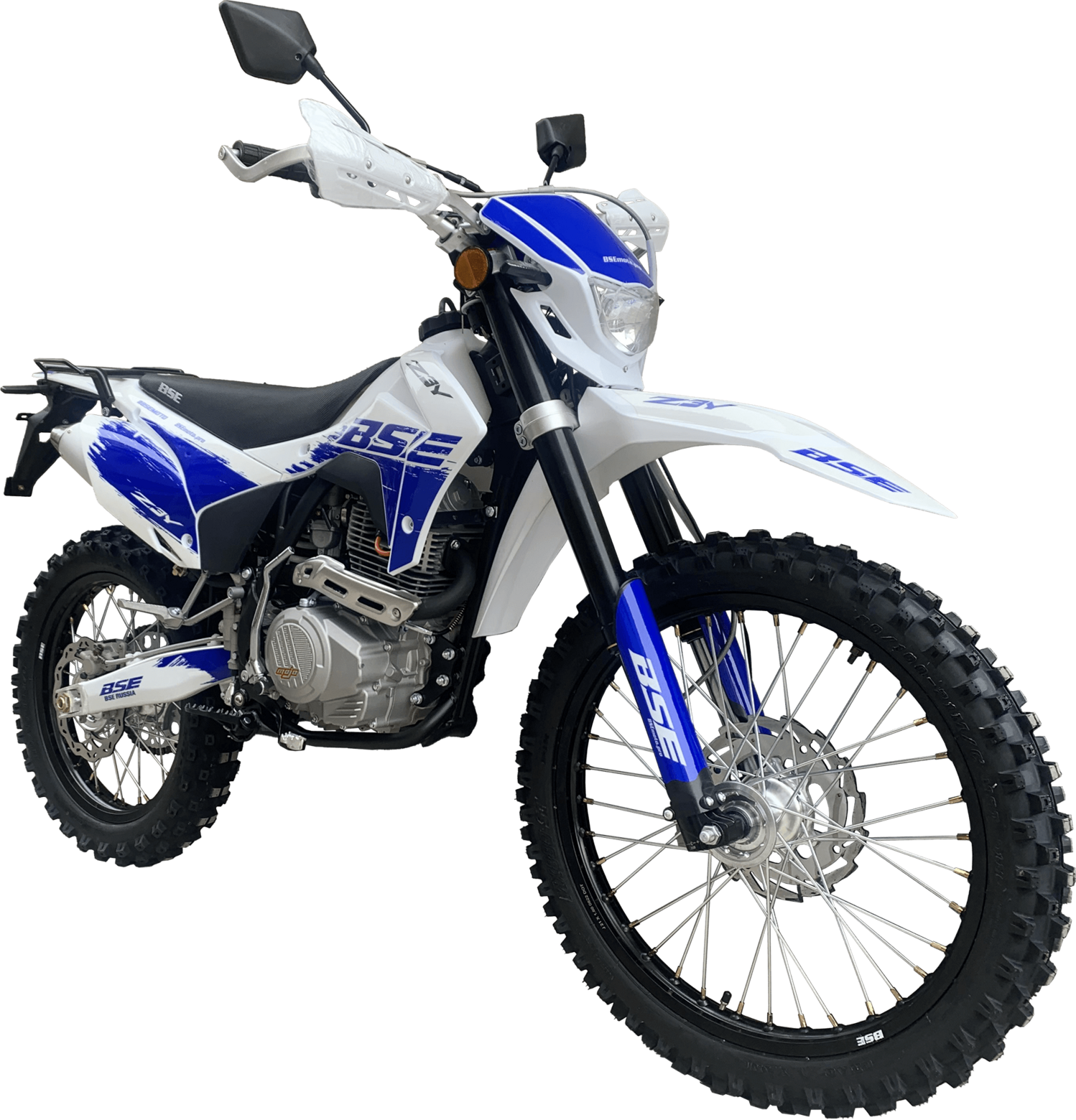Кроссовый мотоцикл BSE Z3 Y 21/18 дает возможность беспрепятственно покорять бездорожье и комфортно передвигаться в городских условиях. Это модель двойного назначения, она относится к среднеразмерной линейке и имеет ПТС для свободного передвижения по дорогам общественного назначения.Движущую силу, равную 21 л.с., производит мощный 250-кубовый двигатель с воздушным охлаждением. Слаженную работу этого четырехтактного агрегата обеспечивает производительный карбюратор PE-30 от Nibbi, а эффективность – механическая 5-ступенчатая КПП с многодисковым масляным сцеплением.Основу конструкции составляет жесткая стальная рама, оснащенная литыми усилителями. Регулируемая подвеска и гидравлическая тормозная система HSК Racing улучшают управляемость байка и безопасность движения. Высокую проходимость гарантирует наличие большого клиренса в 330 мм и внедорожной резины с агрессивным протектором