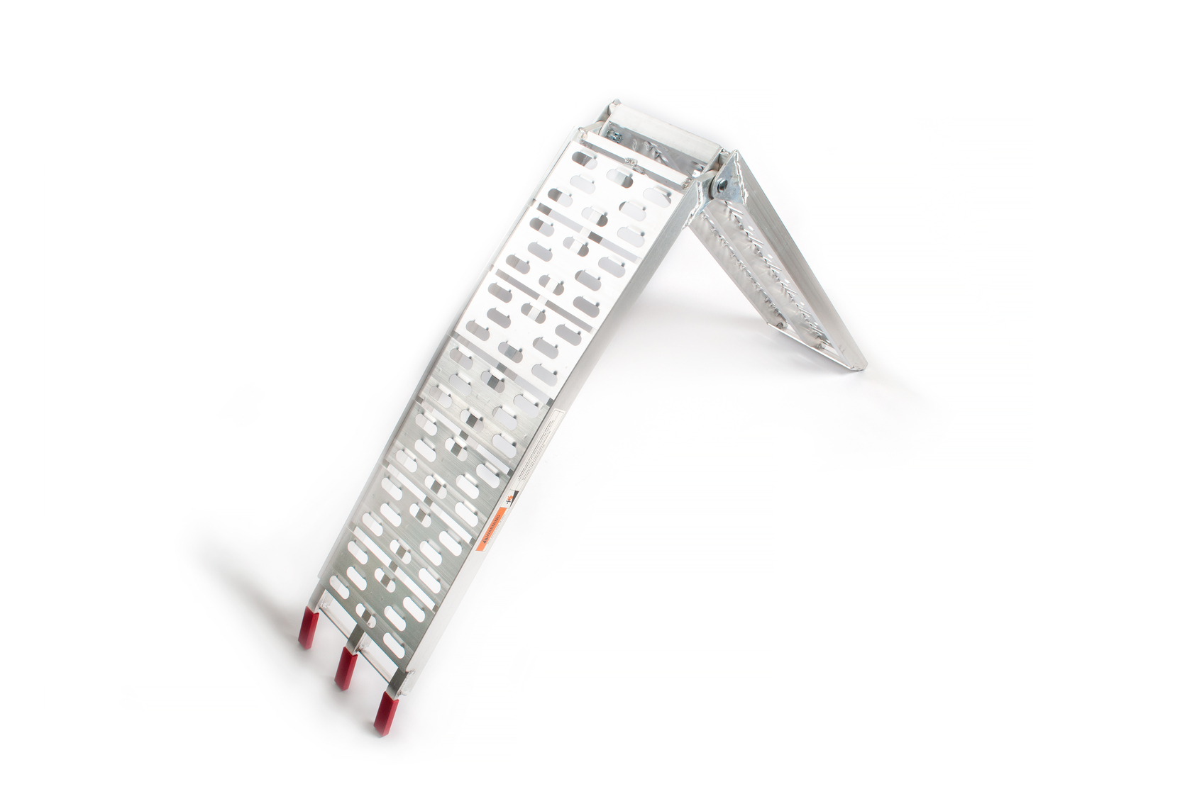 Удобный и легкий складной (переломный) трап из алюминия для погрузки и выгрузки мотоцикла, питбайка или квадроцикла. Максимальная допустимая нагрузка до 250 кг. Благодаря складной конструкции трап легко транспортируется и не занимает много места. В комплекте идет специальная стропа для фиксации трапа к транспортному средству для безопасного использования.