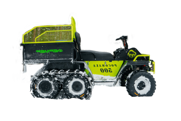 Квадробукс «Росомаха 500 ФЕРМЕР» c с кузовом самосвального типа, 3 осями и двигателем объемом 459 см3. Особенности конструкции квадробукса "Росомаха 500 Фермер":Габаритные размеры: длина 2500 мм, ширина 1300 мм, высота 1520 мм Кузов самосвального типа с откидными бортамиОдноцилиндровый четырехтактный двигатель мощностью 20 л.с. (459 куб. см) с электростартеромТрансмиссия - вариатор и КПП (F-N-R)Передняя подвеска с мотоциклетными амортизаторами Цепной привод на 2 оси (среднюю и заднюю)Усиленная цепь с повышенным ресурсомКолеса 22*10-10Бескамерные шины низкого давления Клиренс 350 ммГидравлический тормоз1.5-местное сиденьеСветодиодные фары и габаритные огниДля уверенной проходимости по трассам со сложным рельефом и пересеченной местности звезда привода квадробукса смещена влево, что в сравнении с традиционным центральным расположением цепи позволяет Росомахе легче преодолевать бездорожье, а также продлевает срок службы самой звезды, снижая вероятность ударов о препятствия на дороге.Базовая комплектация:гидравлический тормозреверсэлектрический запуск двигателятахометрспидометрящик для инструментовувеличенные борта кузовасиденье-лавка