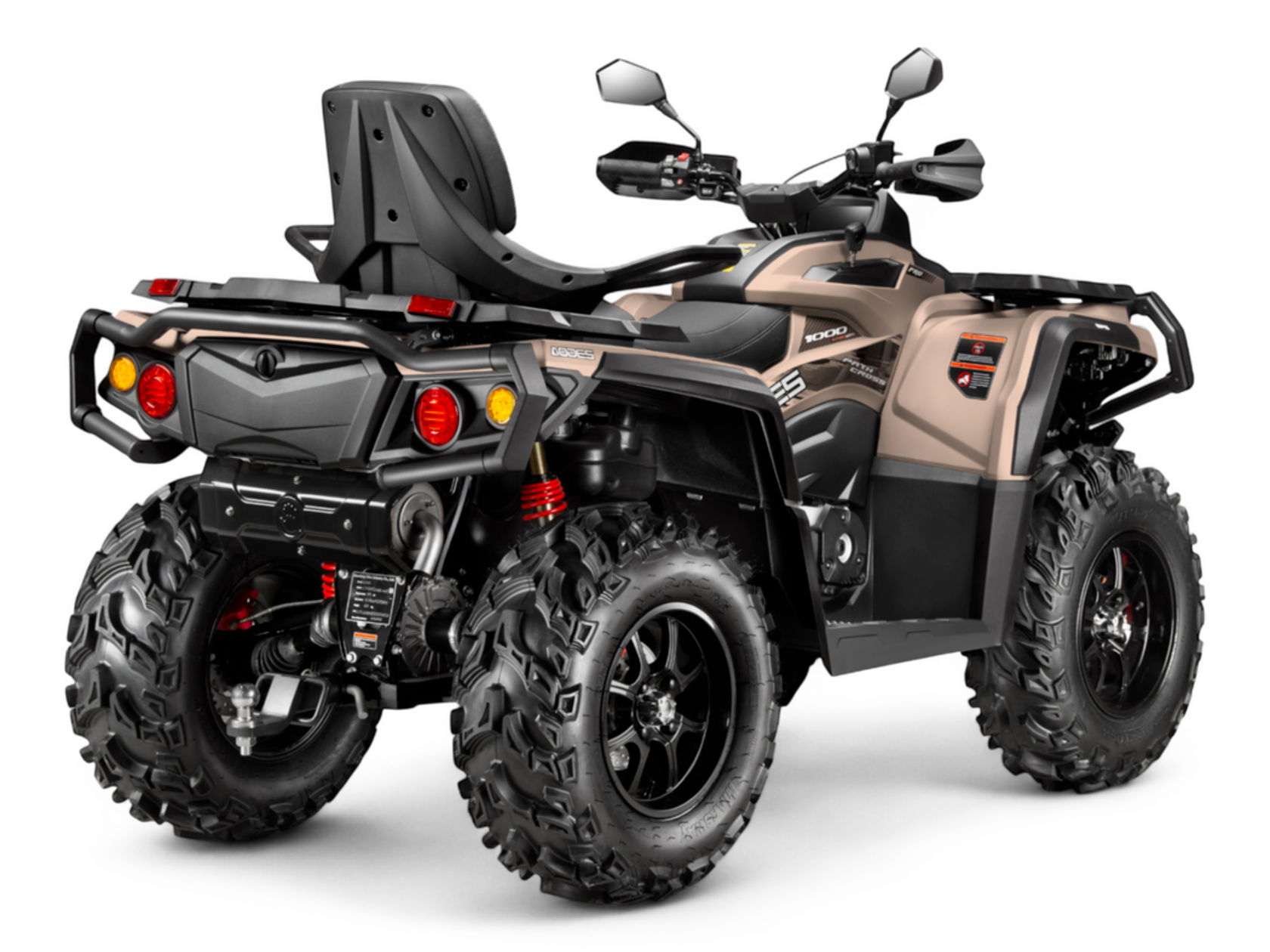 Комплектация Комбинация приборов: - Электронный ключ зажигания; - LCD приборная панель 6,86 дюйма с индикацией основных параметров: вкл/выкл полного привода, индикацией уровня топлива, сигналов поворота и аварийной остановки, подсветки, переключение режимов усилителя руля, информация о техническом обслуживании; - Лебедка с синтетическим тросом и тросоукладчиком, тяговое усилие 1500 кг.; - Ветрозащита рук на руле; - расширители колесных арок; - передний и задний бампер; - замок блокировки рулевого вала; - Электроусилитель руля; - cветодиодная оптика; - дополнительный свет; - фаркоп с электроподготовкой; - звуковой сигнал; - сигналы поворота; - зеркала заднего вида; - бардачок объемом 2 литра под сиденьем; - алюминиевые подножки водителя; - эргономичная задняя и передняя багажные площадки; - розетка 12 Вольт и USB.