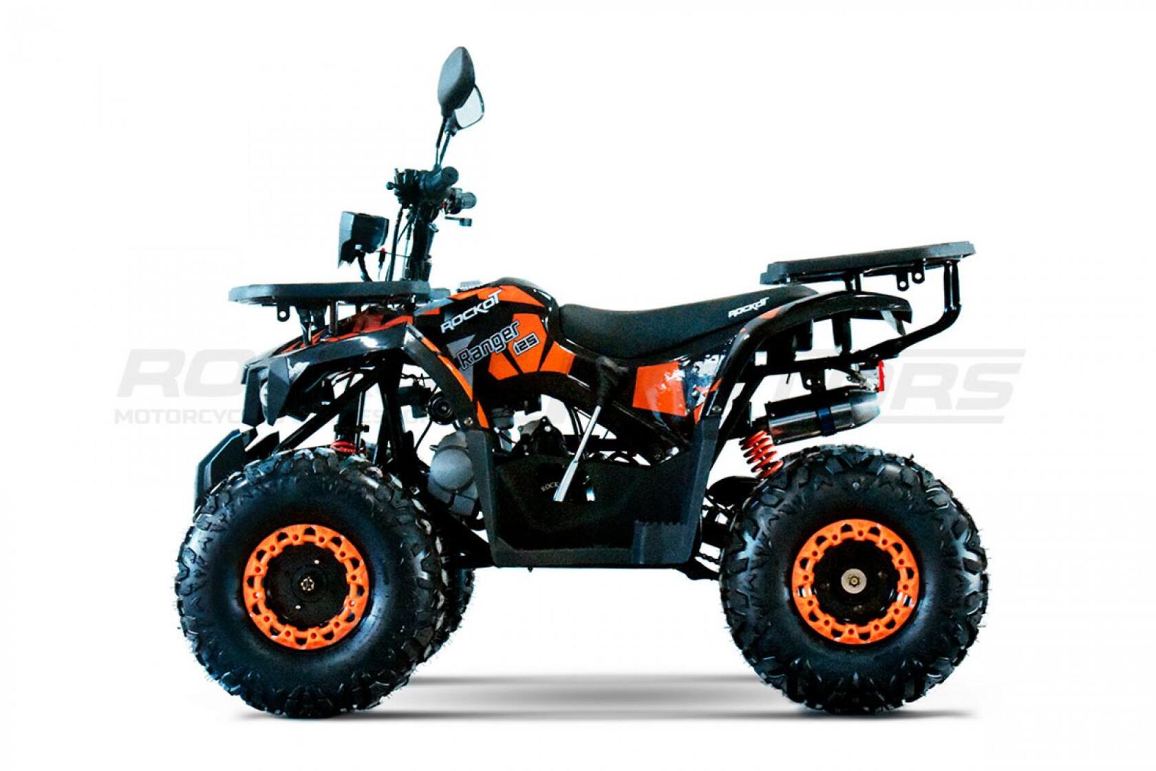 Квадроцикл ROCKOT RANGER-125 Jazzy выгодно выделяется интересной и сбалансированной комплектацией, качественной сборкой и неповторимым дизайном.Мотор 125 куб, коробка автомат с реверсом, подвеска регулируемая с возможностью промазки через масленки, приборная панель, зеркала, защита рук, накладки на багажники, накладки декоративные на колёсах, родительский контроль, дисковые тормоза перед и зад, LED фары, максимальная нагрузка 120 кг!