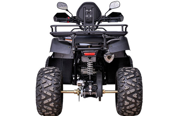 Малокубатурный китайский квадроцикл рассчитан на 1 человека, но легко может увезти двоих. Удлиненное сиденье и более широкие подножки позволит удобно расположиться водителю и пассажиру. Колеса 10 радиуса делают квадроцикл более проходимым и высоким (дорожный просвет - 40 см).