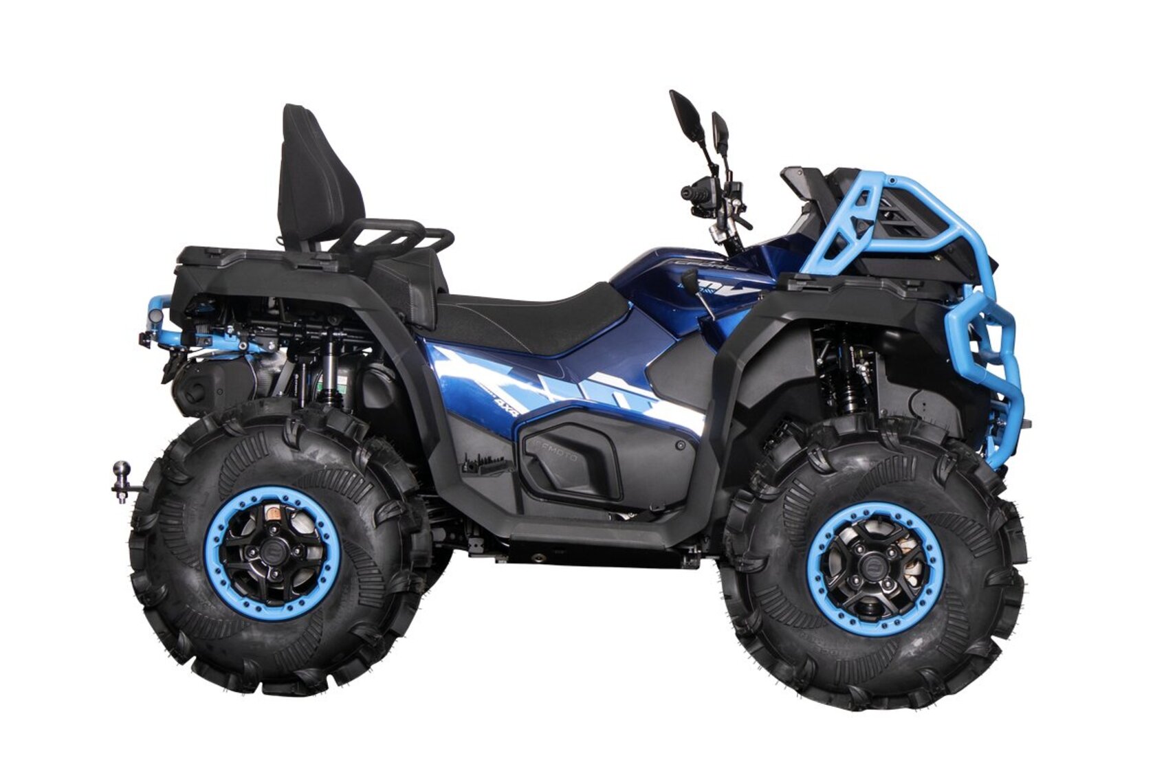 Комплектация 30-дюймовые грязевые шины CST SLUDGE HAMMER на 12” дисках с бедлоками; регулируемый вынос радиатора; шноркели; эксклюзивный вариатор CFMOTO; 8” MMI-дисплей с тачcкрином и офлайн-картами; усилитель рулевого управления (EPS) с 4 режимами работы; улучшенные амортизаторы с прогрессивными пружинами и регулировкой сжатия и отбоя; система помощи при спуске по склону (DAC)