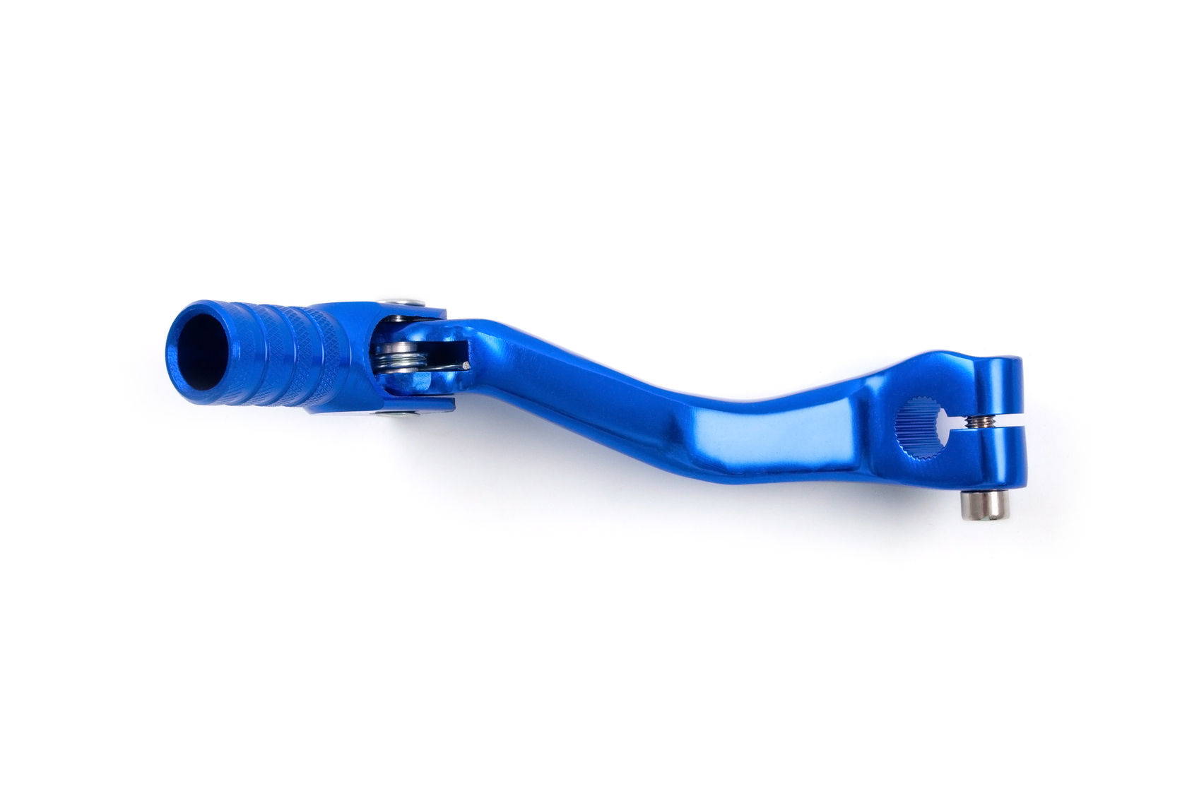 Алюминиевый складной рычаг переключения передач синего цвета для эндуро мотоциклов с двигателями 165-172 FMM и 174 CBS-NB. Изготовлен из литого алюминия со складным кончиком, который предотвращает поломку рычага при падении или боковом ударе. Универсальная конструкция с вылетом, не гнет вал при падениях. Установка без втулки. Совместим с двигателями 165FMM, ZS170MM-2, ZS172-3A, ZS172-5A, ZS174MN-3.