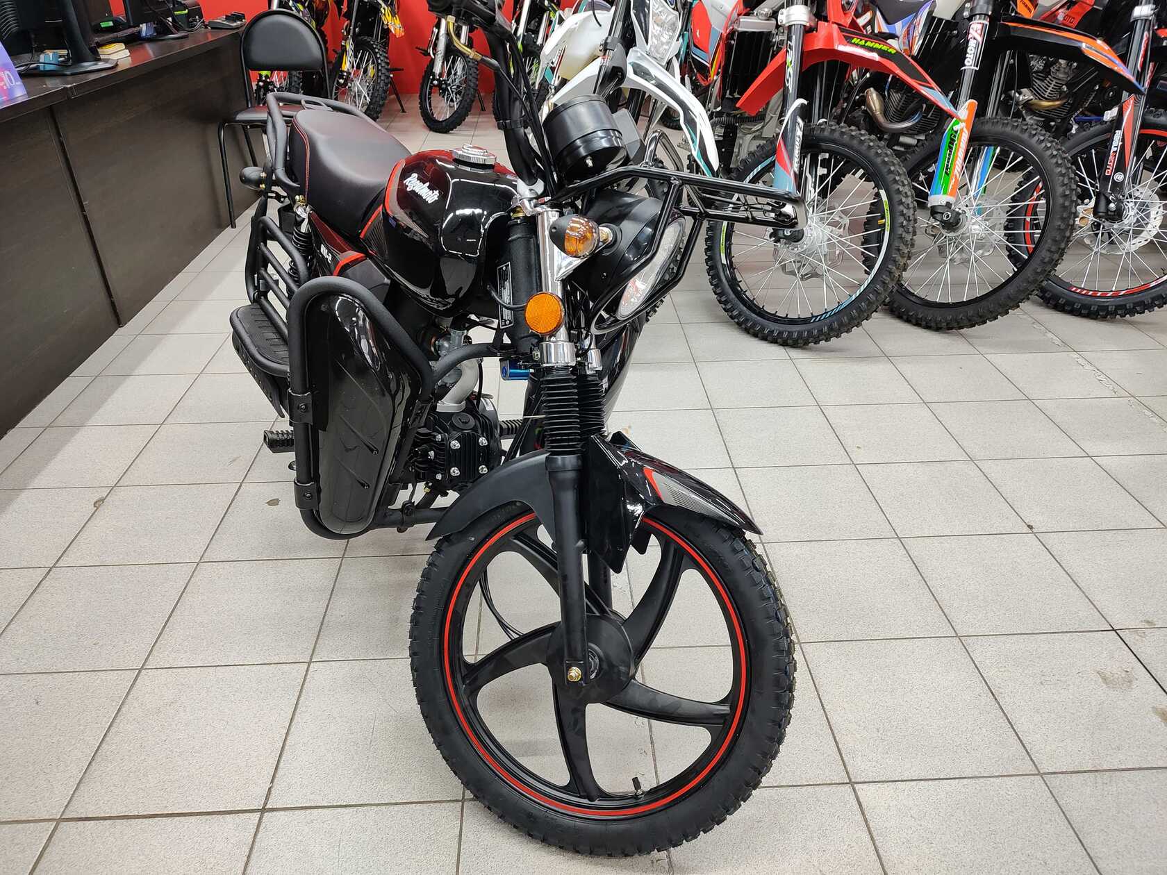 Представляем вниманию поклонников классической мототехники Regulmoto Alpha (RM-2) – обновленную версию популярного мопеда, которая отличается интересной комплектацией и расширенными возможностями повседневного использования. Данная модель отличается продуманной комплектацией, призванной повысить комфорт владельца мопеда и расширить эксплуатационный потенциал техники. Силовой агрегат – одноцилиндровый 4-тактник «кабовского» типа с увеличенным рабочим объемом. Новая ЦПГ устанавливается на производстве заводом-изготовителем и позволяет существенно поднять показатели производительности этого очень надежного и экономичного мотора. Прирост максимальной мощности двигателя также сказывается на скоростных характеристиках мопеда и удобстве управления транспортным средством.За комфорт передвижения по отечественным дорогам отвечают телескопическая вилка спереди и новые парные амортизаторы задней подвески, у которых можно настраивать жесткость пружины в зависимости от нагрузки на заднее колесо. Вопрос безопасности эксплуатации решают надежные барабанные тормоза в ступицах переднего и заднего колеса.Современный привлекательный дизайн мопеда Альфа дополняют такие актуальные решения как цельнолитые диски колес, светодиодные лампы фары головного света, а также организация дополнительного пространства для перевозки различных грузов. Последнему вопросу на Regulmoto Alpha (RM-2) уделено достаточно много внимания: сзади мопед оснащается багажным кофром и складывающимися багажными площадками, спереди над фарой закреплена багажная площадка, на защитных дугах установлены пластиковые бардачки.Воспользуйтесь уникальной возможностью приобрести этот товар по специальной цене при оформлении предзаказа! Для вашего удобства цена уже указана с учетом специального предложения. Предоплата составляет 100%, срок ожидания поставки — от 90 дней. Остались вопросы? Наш менеджер с радостью проконсультирует вас по всем деталям!