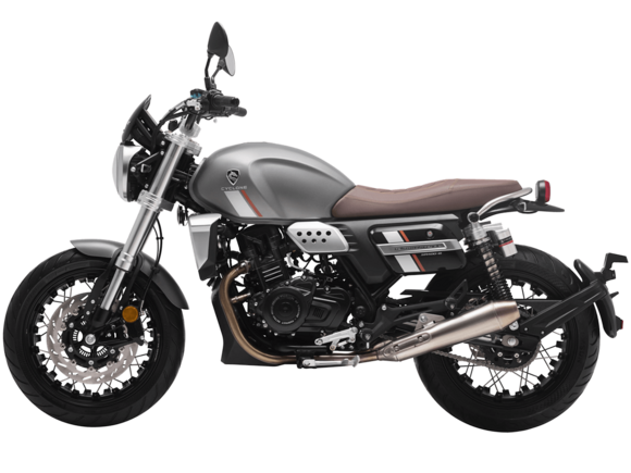 CYCLONE RE401 (SR400-B) 2024 – классик, в котором подчёркнутая простота объединяется с современными технологиями. Данная модель является более продвинутой версией модели RE3 (SR-400) – мотоцикл обладает более современным дизайном, снабжён стильными металлическими накладками на радиатор, а также топливным баком, объём которого увеличен до 20 литров.Двухцилиндровый четырёхтактный двигатель объёмом 401 см3 выдаёт 43 л.с. на 9500 об/мин. Инжекторный впрыск топлива с инжектором BOSCH увеличивает топливную экономичность, а также позволяет добиться высокой приёмистости и неприхотливости агрегата. Жидкостная система охлаждения не допустит перегрева двигателя даже при самом агрессивном вождении. На мотоцикл установлена 6-ступенчатая механическая коробка передач.Максимальная скорость мотоцикла составляет 150 км/ч.RE401 оснащён классическими спицованными колёсами диаметром 17 дюймов. Колёса обуты в бескамерные покрышки TIMSUN. С неровностями дороги эффективно справляются телескопическая вилка перевёрнутого типа спереди и маятник с двумя амортизаторами сзади. Ход передней подвески составляет 130 мм, задней – 81 мм. Оба компонента подвески являются регулируемыми. Эффективное и безопасное замедление с любых скоростей обеспечивают гидравлические дисковые тормоза с ABS спереди и сзади.Клиренс мотоцикла составляет 170 мм. Объём топливного бака – 20 л. Снаряжённая масса – 186 кг.Из дополнительного оборудования можно выделить USB-порт и датчики давления в шинах.Мотоцикл сочетает в себе отличные технические характеристики, комфорт и надёжность, что позволяет вам ощутить настоящую свободу на любой дороге.