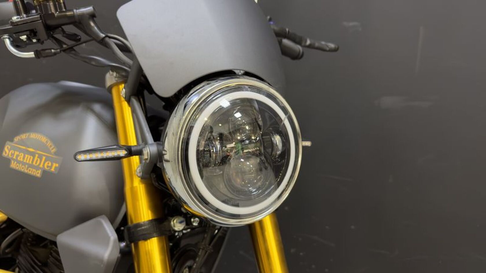 В мотоцикле MOTOLAND SCRAMBLER 250 установлен двигатель YX 165FMM, одноцилиндрового типа. В данной модели присутствует воздушное охлаждение. Доржник SCRAMBLER 250 оснащен пятиступенчатой коробкой передач. Передние и задние тормоза дискового типа. Стоит отметить LED фару, которая многим придется по вкусу.