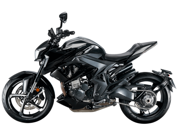 Мотоцикл ZONTES ZT350-R – современный нейкед со стремительным и дерзким дизайном. Хорошо подходит как для поездок в городской среде и маневрирования в межрядье.Силовая установка представлена одноцилиндровым 4-тактным двигателем ZT184MP с 4 клапанами и 2 верхними распредвалами. Двигатель имеет объём 348 см³ и обеспечивает мощность в 39 л.с. Оснащён инжектором BOSCH и системой жидкостного охлаждения. Механическая коробка передач имеет 6 ступеней и схему 1-N-2-3-4-5-6. Запуск двигателя осуществляется с помощью бесключевого доступа.Ёмкость топливного бака 15 литров.Колёса представлены литыми алюминиевыми дисками диаметром 17 дюймов. На мотоцикл установлены датчики давления в шинах, показатели от которых выводятся на приборную панель. Для подвески спереди используется телескопическая вилка, сзади – моноамортизатор. Гидравлические дисковые тормоза произведены испанской компанией J.JUAN, входящей в холдинг BREMBO.Для освещения используется яркая LED-оптика, а приборная панель представлена цифровым дисплеем. Имеется 2 USB-порта.Габариты мотоцикла 2030х795х1120 мм. Колёсная база 1390 мм. Высота по седлу 795 мм. Вес 165 кг.Комплектация и внешний вид мотоцикла могут отличаться в зависимости от поставки. Изображение на сайте не гарантирует наличие тех или иных опций. Уточняйте информацию при оформлении заказа.