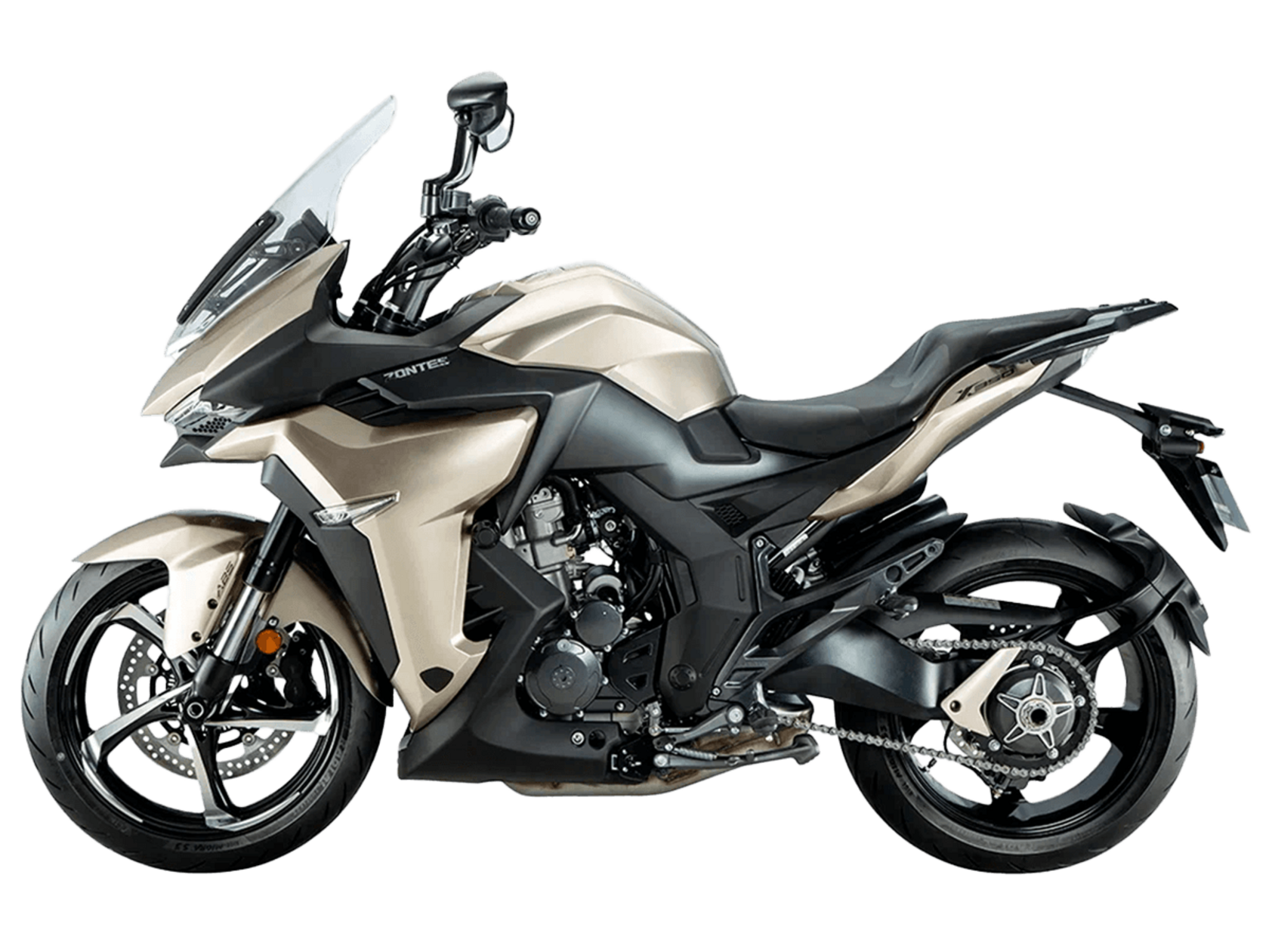 Мотоцикл ZONTES ZT350-X1 – турист со стремительным современным дизайном. Хорошо подходит как для повседневных поездок по городу, так и для покорения дальних маршрутов.Силовая установка представлена одноцилиндровым 4-тактным двигателем ZT184MP с 4 клапанами и 2 верхними распредвалами. Двигатель имеет объём 348 см³ и обеспечивает мощность в 39 л.с. Оснащён инжектором BOSCH и системой жидкостного охлаждения. Механическая коробка передач имеет 6 ступеней и схему 1-N-2-3-4-5-6. Запуск двигателя осуществляется с помощью бесключевого доступа.Ёмкость топливного бака 19 литров.Колёса представлены литыми алюминиевыми дисками диаметром 17 дюймов. На мотоцикл установлены датчики давления в шинах, показатели от которых выводятся на приборную панель. Для подвески спереди используется телескопическая вилка, сзади – моноамортизатор. Гидравлические дисковые тормоза произведены испанской компанией J.JUAN, входящей в холдинг BREMBO.Для освещения используется яркая LED-оптика, а приборная панель представлена цифровым дисплеем. Рычаги тормоза, сцепления и лапки КПП можно отрегулировать. Имеется 2 USB-порта.Габариты мотоцикла 2055х795х1330 мм. Колёсная база 1395 мм. Высота по седлу 795 мм. Вес 169 кг.