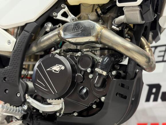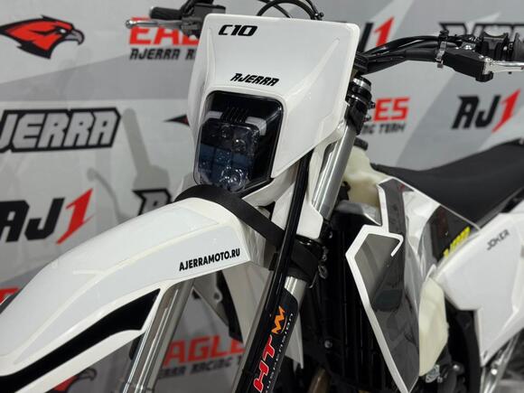 Мотоцикл AJERRA JOKER C10 YBS 300 — это воплощение современного эндуро с безупречным балансом мощности, управляемости и технологичности. Он создан на базе проверенного двигателя Loncin YBS300 176FM с водяным охлаждением, который обеспечивает стабильную работу, отличную тягу и плавную реакцию на газ. Надёжный мотор и карбюратор Nibbi Racing PWK 34 Black формируют сбалансированную связку, обеспечивающую уверенное ускорение и высокую производительность в любых условиях. Конструкция мотоцикла построена на прочной и лёгкой раме К10 завода AJ1 — это точная копия KTM 2024 года, что гарантирует устойчивость и отличную управляемость даже на сложных участках трассы. Внешне модель выполнена в стиле Husqvarna 2024 года: динамичный пластик придаёт мотоциклу агрессивный спортивный облик, а продуманные формы обеспечивают удобство посадки и контроль над техникой. Подвеска у JOKER C10 на высшем уровне: спереди установлена вилка HTW SCC длиной 930 мм с одним картриджем, а сзади — амортизатор HTW 2450 с прогрессией, обеспечивающий мягкость и точную работу при высоких нагрузках. Алюминиевый маятник, фрезерованные траверсы AJ1 2024 и усиленные обода UNISON 7116 создают прочную, но лёгкую конструкцию, идеально подходящую для скоростного эндуро. Мотоцикл оснащён тормозной системой AJ1 с дисковыми тормозами спереди и сзади, обеспечивающими надёжное торможение в любых условиях. Усиленный руль AL7075, фрезерованные ступицы и алюминиевая ведомая звезда AL7075 51 делают управление максимально точным и уверенным. Выхлопная система AJ1 2025 обеспечивает не только приятный звук, но и стабильную работу двигателя на высоких оборотах. Электрооборудование продумано до мелочей: мощный свет 2 EYE LED Generation 4 (50W), литиевый аккумулятор Skyrich, приборная панель в стиле KTM 2024, счётчик моточасов, защита рамы и мотора, передние и задние стропы, а также анатомическое антискользящее сиденье AntiSkid. Каждая деталь создана для удобства и надёжности. Покрышки AJ1 размером 80/100-21 спереди и 120/90-18 сзади обеспечивают уверенное сцепление с дорогой, а цепь KMC 520 Pro выдерживает высокие нагрузки при активной езде. Все болты формата TorX повышают надёжность и упрощают обслуживание. С высотой по седлу 94 см, мотоцикл AJERRA JOKER C10 YBS 300 ориентирован на опытных райдеров, ищущих надёжную и технологичную технику для эндуро и кросса. Эта модель сочетает в себе премиальные комплектующие, высокое качество сборки и выдающиеся характеристики, делая езду комфортной, управляемой и по-настоящему захватывающей..