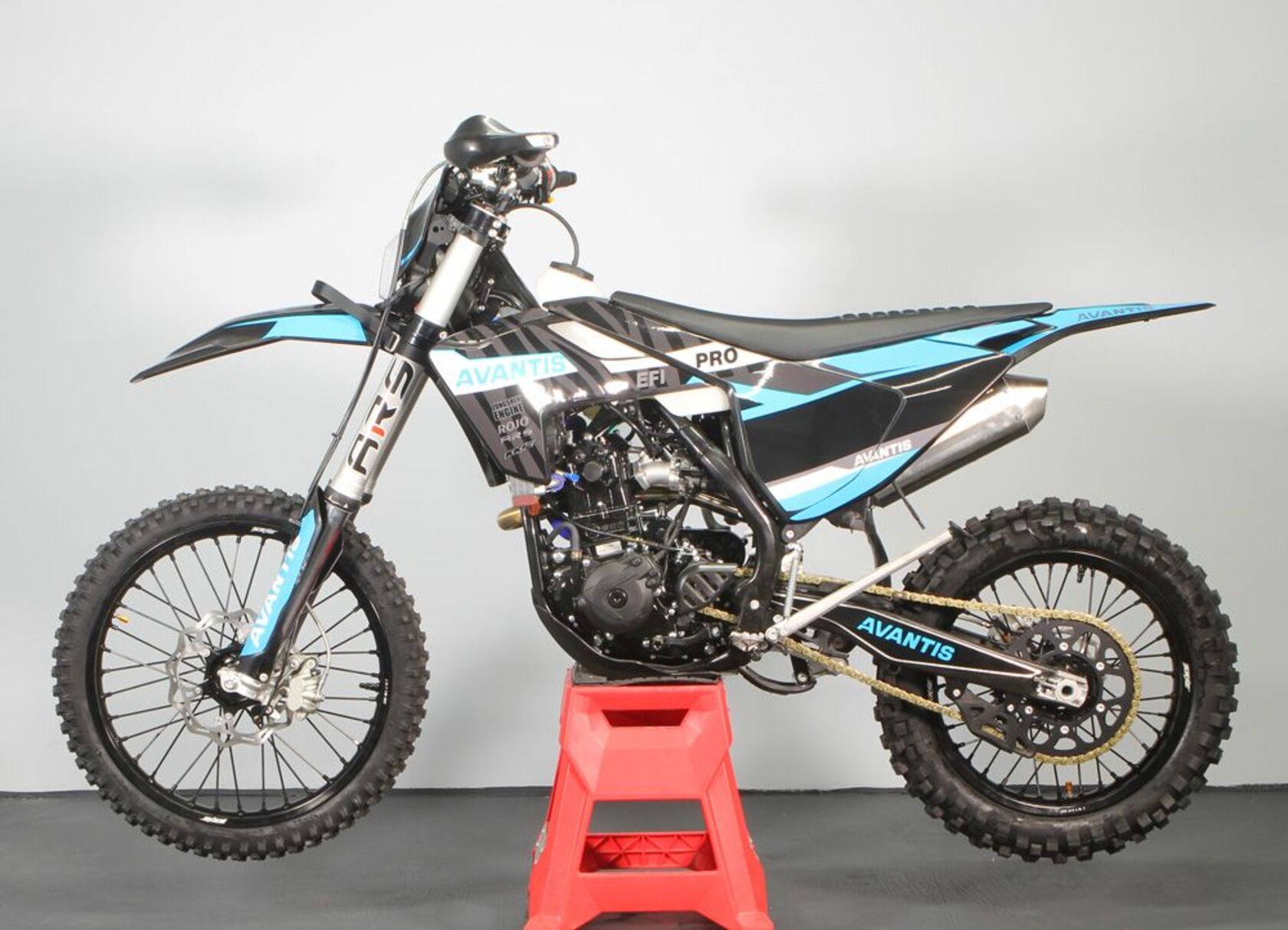 Мотоцикл Avantis Enduro 300 PRO EFI Exclusive ARS — представитель флагманской серии Avantis Enduro 300 PRO, который проектировался специально для тренировок и участия в спортивных соревнованиях. Ориентированный на профессиональную эксплуатацию в самых жёстких условиях, этот мотоцикл не боится прыжков, ударов и резких маневров: созданный для побед, он готов к любым испытаниям!Оборудование и комплектующие у Avantis Enduro 300 PRO EFI Exclusive ARS подобраны соответствующие. Двигатель NC300-S (182FMM), ставший сердцем модели, является новой генерацией легендарного 177ММ. Его ключевой особенностью стало то, что уже с завода мотоцикл укомплектован поршневой диаметром 82 мм: это обеспечивает ему 300 см³ рабочего объёма без необходимости установки бигбора и дополнительного тюнинга. Из других нововведений — новая четырёхклапанная головка с двумя распредвалами и непосредственным воздействием кулачков на клапана (вместо одного распредвала через коромысла, как на предыдущей версии). Таким образом, вместе с Avantis Enduro 300 Pro EFI вы получаете отличную динамику во всём доступном диапазоне, надёжность заводской сборки и выносливость проверенного временем 177-го мотора — а также увеличение мощности и максимальных оборотов по сравнению с предшественником.Второй важный элемент — это фирменная двухкартриджная подвеска ARS с возможностью регулировки и индивидуальной настройки. Продуманная конструкция, проверенная в деле на отечественных и международных соревнованиях, эффективно отрабатывает рельеф любой сложности и отличается высокой надежностью. Спортивные тормоза являются репликой легендарных Brembo и обеспечивают мгновенное торможение.Комплектация Avantis Enduro 300 PRO EFI Exclusive ARS также включает суперпрочные колёса ККЕ, алюминиевую толстостенную защиту радиаторов, усиленную алюминиевую защиту рычагов, защиту картера и прогрессии, яркую светодиодную фару с регулировкой света, сальниковую цепь, защиту рук, счётчик моточасов, яркую фару с регулировкой света, буксаторы колес и армированные тормозные шланги.