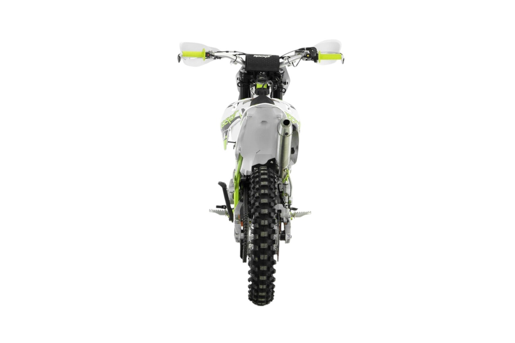 R5F Raptor 2.0 - популярная модель среднеразмерного эндуро мотоцикла в линейке марки ROCKOT, которая заслуженно занимает лидирующие позиции среди множества моделей данного класса и ценового сегмента. То, что из себя представляет модель R5F Raptor, является результатом многолетней работы инженеров завода, технических специалистов компании Rockot-Motors и обратной связи нескольких тысяч райдеров ,связавших свой мотоциклетный путь с данной моделью.ДизайнПоследнее обновление, связанное с дизайном версии 2.0, заключается в едином графическом оформлении всей линейки серии R5, которая значительно расширилась в 2024-2025 годах. R5F имеет все ту же цветовую гамму, состоящую из ярко-зеленого, черного и белого цветов. Как и прежде, мотоцикл имеет облицовочный пластик в стиле KTM 15`, который широко распространен в классе среднеразмерных эндуро. Рама окрашена в зеленый цвет, аналогичный расцветке графики. Двигатель, элементы передней и задней подвески окрашены в серебристый цвет, что гармонично сочетается с элементами белого пластика и ярко контрастирует с черными колесными дисками, траверсами и органами управления.РамаРама мотоцикла ROCKOT R5F Raptor 2.0 является его визитной карточкой, превознося мотоцикл в верх рейтинга среднеразмерных эндуро мотоциклов. Особенность рамы заключается в ее конструкции, которая имеет в передней части две цельные трубы, идущие от рулевой колонки до задней части, где крепится маятник задней подвески. Боковая часть рамы состоит из плоских труб с шестигранным сечением профиля. Именно это являлось одним из последних обновлений рамы. Также обновленная модель получила новую схему крепления боковой подножки, что сделало этот узел более надежным. Рама производится из хром-молибденового сплава стали, который является очень прочным и легким.ПодвескаПередняя и задняя подвеска имеют большой рабочий ход. В передней подвеске этого удалось достичь благодаря длине амортизаторов 830 мм, а сзади - благодаря системе подвески с рычагами прогрессии. Толщина рабочих штоков передних амортизаторов составляет 37 мм, что уже является стандартом для данного класса мотоциклов. Длина заднего амортизатора составляет 450 мм. Задний амортизатор имеет регулировки скорости отбоя и преднатяга пружины. Система рычагов прогрессии не только увеличивает рабочий ход задней подвески, но и делает работу передних и заднего амортизаторов более равномерной и прогнозируемой.КолесаЭндуро мотоцикл ROCKOT R5F Raptor 2.0 оснащается усиленными колесными дисками из легкого алюминиевого сплава. Спереди и сзади установлены шины с внедорожным протектором, размерностью 80/100-21 спереди и 100/90-18 сзади.Тормозная системаПередняя тормозная система состоит из вентилируемого тормозного диска диаметром 240 мм и двухпоршневого суппорта с фирменным тормозным цилиндром на руле. Сзади установлен тормозной диск того же диаметра и однопоршневый суппорт.ДополнительноВ базовой комплектации мотоцикл оснащен усиленным алюминиевым рулем переменного сечения 22/28. Рычаги переднего тормоза и сцепления под надежной армированной защитой с прочными эластичными щитками.