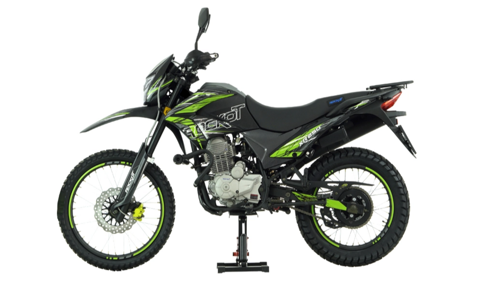 Главная ... Мотоциклы внедорожные Мотоцикл эндуро ROCKOT XR250 (черный/зеленый, 21/18, ЭПТС)