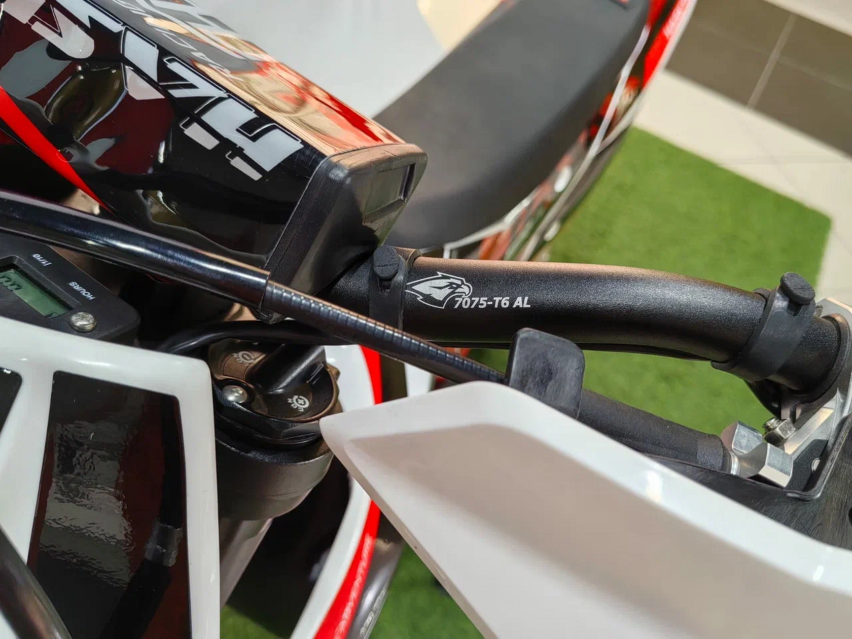 Для истинных ценителей мотоспорта компания Hasky представляет специальную версию своего флагмана – F5 Racing Limited Edition. Этот среднеразмерный эндуро-байк с колесной формулой 21/18 дюймов создан для тех, кто требует от техники максимальной отдачи и надежности в экстремальных условиях.В основе мотоцикла лежит двигатель Loncin 166 YB250R, работающий в паре с 5-ступенчатой коробкой передач. Спортивный карбюратор Nibbi PE 30 Race обеспечивает мгновенную реакцию на ручку газа, а электростартер гарантирует беспроблемный запуск в любых условиях. Подвеска профессионального уровня включает передние амортизаторы HTW с диаметром пера 43 мм и задний моноамортизатор той же марки, что обеспечивает превосходную управляемость на сложном рельефе.Мотоцикл оснащен усиленными алюминиевыми ободами Unison 7016, покрышками Soft (120/90-18 сзади и 80/100-21 спереди) и специальными камерами с усиленной 3-мм стенкой. Руль из высокопрочного сплава 7075 в сочетании с эргономичными грипсами Lock-on обеспечивает полный контроль над байком. Особого внимания заслуживает система безопасности: влагозащищенная проводка, складной рычаг сцепления на 360, защита рук и мощная светодиодная фара с пятью линзами.