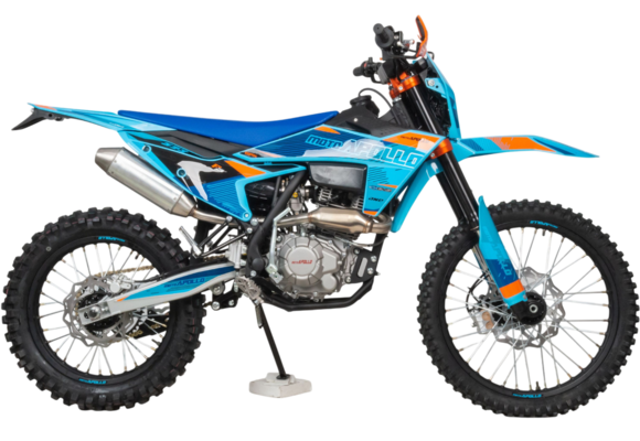 • Колёса 21" спереди и 18" сзади с агрессивным протектором (80/100–21" и 110/100–18") обеспечивают отличное сцепление на грунте, песке и грязи.