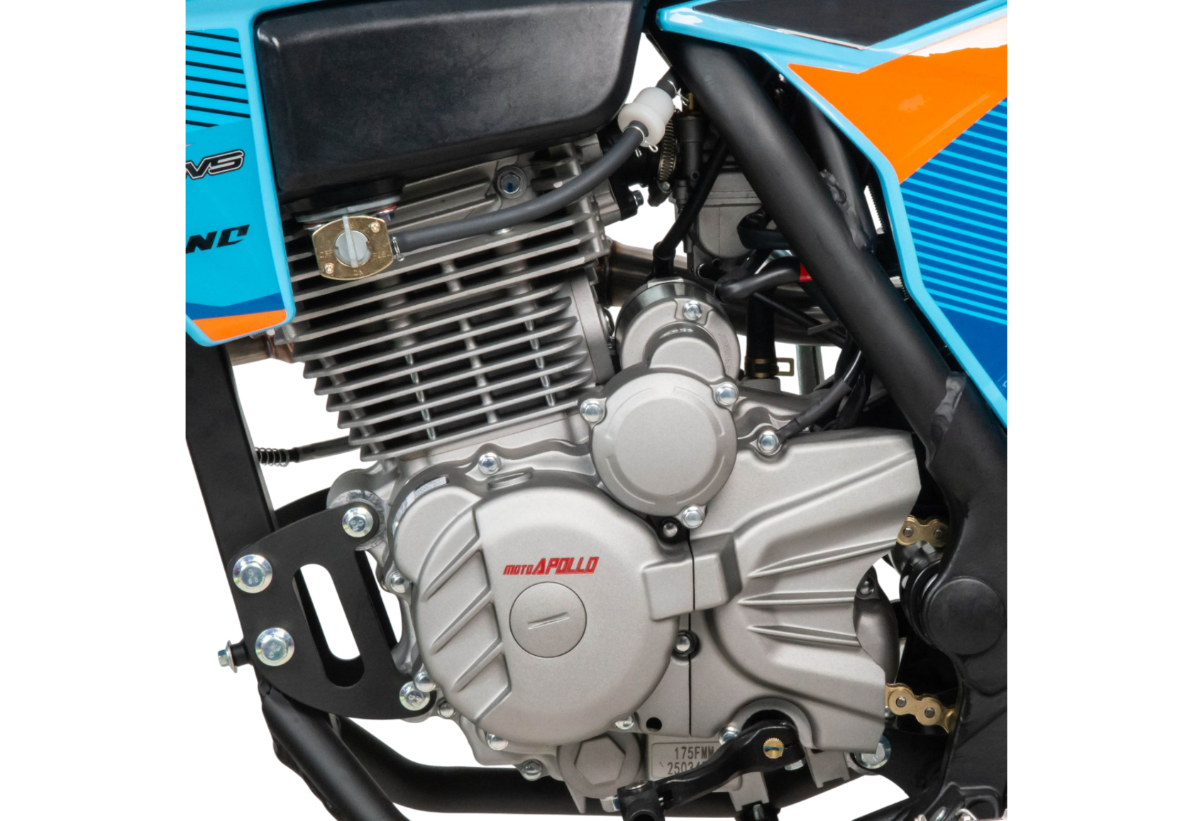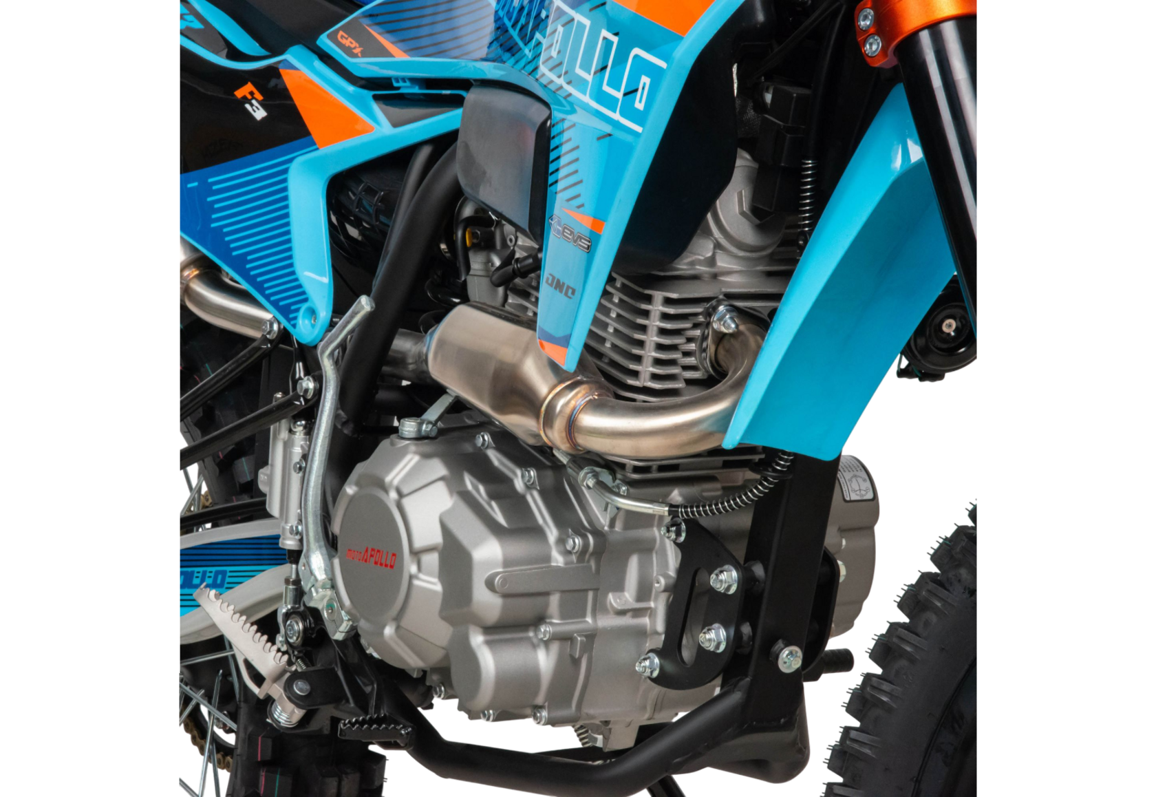 Moto Apollo F3 300 — это настоящий кроссовый мотоцикл, созданный для тех, кто ищет острых ощущений за пределами асфальта. Несмотря на маркировку двигателя 175FMM, его реальный рабочий объём составляет 300 см³, что обеспечивает впечатляющую мощность в 25 лошадиных сил. Такой двигатель с воздушным охлаждением и цепным приводом ГРМ отличается простотой конструкции, надёжностью и лёгкостью в обслуживании — идеальные качества для активной езды по пересечённой местности.