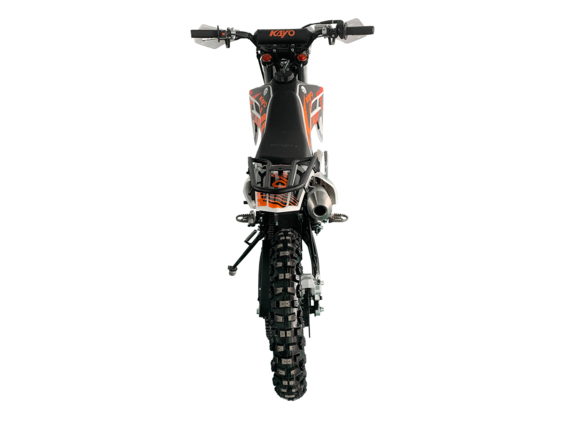 KAYO K1-J 150 MX (CB150) 19/16 (2025 г.) – мотоцикл для начала ваших внедорожных приключений.Мотоцикл оснащён 4-тактным двигателем SOHC и воздушным охлаждением. Кубатура 144,6 см³, диаметр и ход поршня – 65,5 x 49,5 мм, со степенью сжатия 9,2:1. Система подачи топлива представлена карбюратором PE24. Максимальная мощность 12 л.с. при 8500 об/мин и максимальный крутящий момент 10 Н·м при 6500 об/мин.Запуск двигателя осуществляется с помощью электростартера или кикстартера. Зажигание CDI. Ёмкость топливного бака 6 литров.Механическая 5-ступенчатая коробка передач с цепным приводом позволяет максимально эффективно передавать мощность на заднее колесо.Передняя нерегулируемая вилка 735 мм и задний нерегулируемый амортизатор 360 мм.Размерность колёс – 19 дюймов спереди и 16 дюймов сзади. Такие параметры обеспечивают отличную проходимость и устойчивость. Алюминиевые обода, ступицы и буксаторы. Гидравлические дисковые тормоза гарантируют безопасное торможение в любых ситуациях.Мотоцикл оборудован счётчиком моточасов, задней багажной платформой, пассажирскими подножками и пластиковой защитой рычагов.Размеры 1850×760×1060 мм. Высота по седлу 790 мм. Дорожный просвет в 250 мм. Колёсная база 1250 мм. Сухая масса 95 кг.KAYO K1-J 150 MX (CB150) 19/16 (2025 г.) – идеальный выбор для тех, кто ищет надёжного двухколёсного друга. Он готов к приключениям и порадует как новичков, так и опытных райдеров.