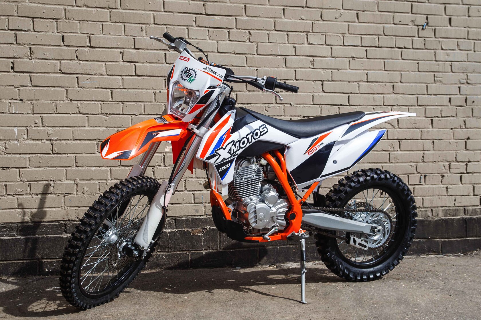 Новинка на Российском рынке - мотоцикл XMOTOS RACER 250 см.куб. 21/18 Эта модель кроссового мотоцикла скомплектована в лучших традициях полноразмерных китайских мотоциклов. В нем применены все компоненты, которые отлично зарекомендовали себя на нашем рынке и прошли испытание временем на надежность. В раме XMOTOS Racer Pro установлен 4-тактный мотор Zongshen 172 FMM с воздушным охлаждением, который можно запускать как при помощи кнопки электростартера, так и привычным рычагом кик-стартера. Показатели максимальной мощности силовой установки мотоцикла составляют около 21 лошадиных сил. При этом ключевые комплектующие и производительность компонентов остаются на достаточно высоком уровне: гибкий, устойчивый к ударам пластик, алюминиевые(7116) ободья колес, фара головного света и нержавеющий выхлопной тракт и банка глушителя приятно дополняют четкую работу двигателя и трансмиссии. Спортивный снаряд начального уровня позволит получить полноценные навыки управления техникой на треке и максимум удовольствия от мотопрогулок в хорошей компании.У нас Вы можете купить этот мотоцикл с бесплатной доставкой по РФ и гарантией до года. Также его можно приобрести в рассрочку или в кредит.