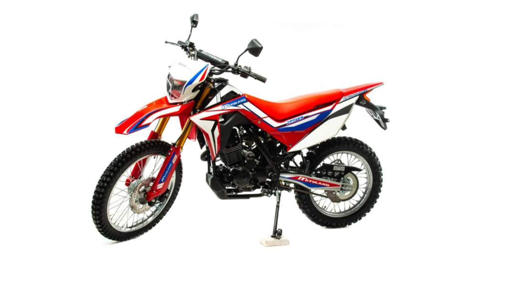 Motoland CRF ST ENDURO предназначен для езды по бездорожью, эндуро соревнований, подходит для города, шоссейных и сельских дорог, имеет ПТС. Китайский Эндуро компании MotoLand оснащён одноцилиндровым 4-тактным двигателем 170 FMN мощностью объемом 250 см³. Мотор мощностью 16 л. с. даёт возможность разгоняться на Эндуро по ровной трассе до 120 км/ч. Расход топлива — 5 литров на 100 км. Коробка передач механическая, 5-скоростная. Для запуска мотора используйте электростартёр или кикстартёр. Установлена электронная система зажигания (CDI). Эндуро MotoLand отличаются высокой проходимостью, отлично ведут себя на мягком грунте и песке, легко преодолевают препятствия. Спортивный характер Эндуро 250 подчёркивается современным дизайном. Классическая конструкция акцентирует внимание на сильных сторонах мотоцикла, которому не страшны грязь, брёвна, камни и другие преграды. Мотоцикл Motoland CRF ST ENDURO доступен в красном цвете. Мотолэнд Эндуро весит 135 кг. Длина мотоцикла — 2100 мм, высота по седлу — 890 мм. Эндуро подходит для пользователей любого роста, хорошо держит баланс и позволяет уверенно сохранять равновесие даже на сложных участках эндуро трасс. Колёса спицованные, сделаны из алюминия. Размер переднего колеса — 21 дюйм (530 мм), заднего — 18 дюймов (450 мм). Передние и задние тормоза дисковые. Покрышки с крупными шипами подходят для бездорожья, лесных дорог, песка и мягкого грунта. При этом купить мотоцикл Эндуро можно не только для соревнований, но и для езды по трассе и городу. У Motoland CRF ST ENDURO для этого есть всё необходимое: ПТС, зеркала заднего вида, поворотники, стоп-сигнал, фара дальнего и ближнего света. На заднем крыле установлено крепление для номера. Рама у мотоцикла стальная, хорошего качества. Передняя вилка — перевёрнутая телескопического типа, дополнительно защищена жёстким пластиком. Задняя подвеска с моноамортизатором. Руль Эндуро усилен пластиковыми рамками, которые защищают руки гонщика от веток и травм при падениях. Приборная панель оснащена ЖК-экраном, на котором отображается вся информация о состоянии Эндуро: обороты, пробег, скорость и другие необходимые данные. У нас Вы можете купить этот мотоцикл с бесплатной доставкой по РФ. Также его можно приобрести в рассрочку или в кредит.