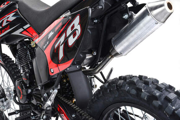 Motoland XR 300 Lite (175FMM) – бюджетный короткобазный кроссовый мотоцикл с уменьшенной высотой по седлу и мощным двигателем 175FMM на воздушном охлаждении 300 cc мощностью 25 лс.Ключевыми особенностями мотоцикла являются его компактные габариты, стальная рама, современная подвеска с предустановленными настройками с завода, мощные тормоза, стальные колесные диски, наличие электростартера и кик стартера, прямоточный выхлоп, обвес из АБС пластика, LED оптика с возможностью переключения ближний \дальний, заниженное комфортное сидение.- Двигатель ZS 175FMM – 300 кубовый «тяговитый» двигатель с высокими показателями крутящего момента и мощностью 25 лс, на воздушном охлаждении.-карбюратор PZ 30 обеспечивает бесперебойную работу двигателя в любом диапазоне температуры и высоты.- Стальная рама обеспечивает солидный запас прочности, ресурс и ремонтопригодность- Энергоемкая подвеска с заводскими настройками гарантирует уверенное преодоление неровностей дороги без «клевания носом» при торможении и обеспечивает комфорт райдера даже сидя на сидении.- У фары 2 режима работы, обеспечивающие хороший уровень освещения в темное время суток- электростартер\кик стартер дарят удобство и надежность в любых условиях эксплуатации- руль 28 мм со средним подъемом - уверенное динамичное руление в стойке за счет низкого центра масс и повышенный запас прочности- подножки для пассажира- цепь 520 для увеличенного срока эксплуатации- стальные звезды для большого ресурса- счетчик моточасов для отслеживания регламентов ТО- бак на 9 литров предполагает прохваты до 130 км в автономном режиме- сухой вес около 120 кг позволит управлять мотоциклом без лишних трудозатрат