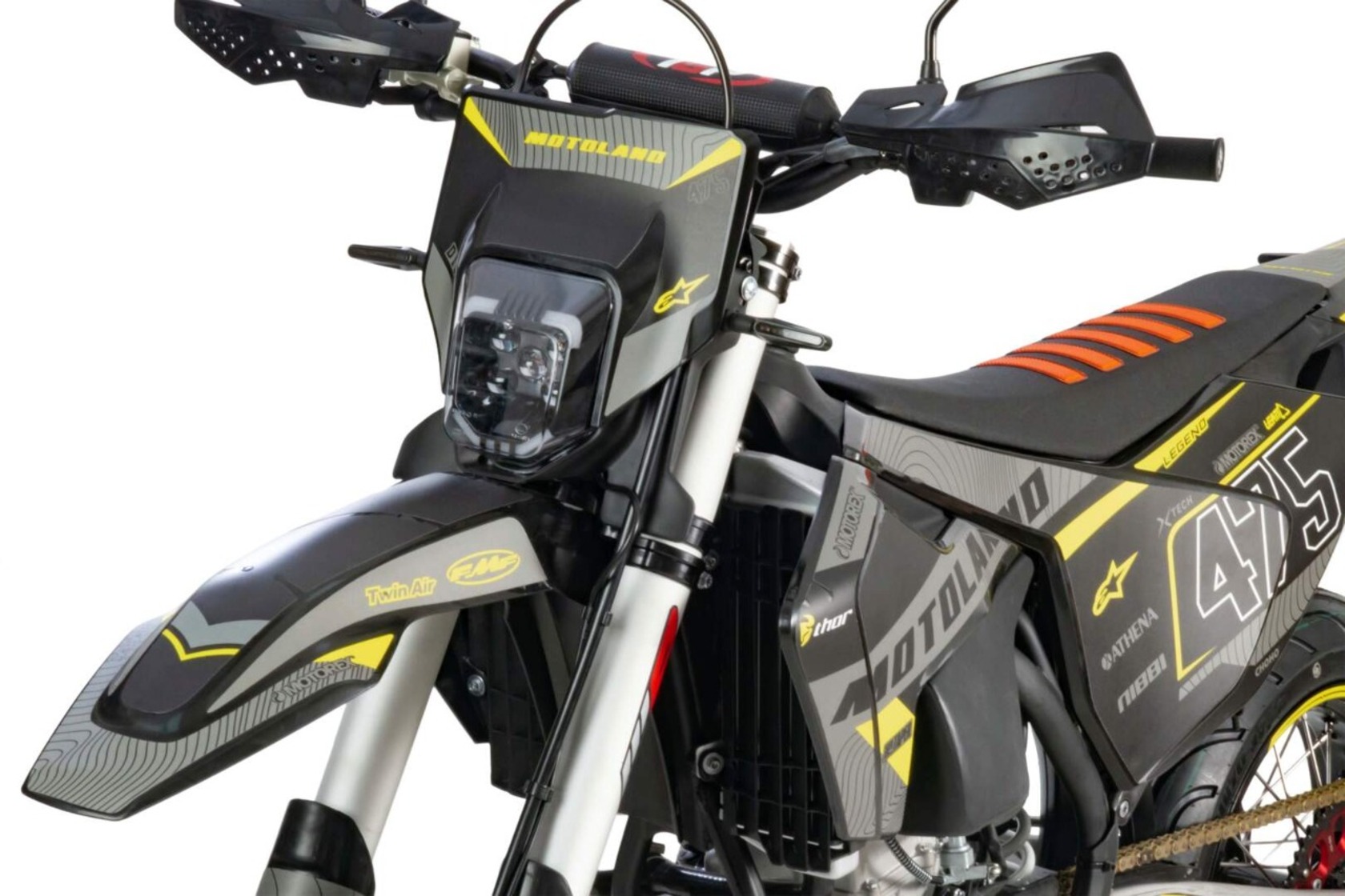 Мотоцикл MOTOLAND 500 XT500 ST 17/17 (мотард) это полноценный «заряженный» кроссовый мотоцикл, но на шоссейной резине. Имеет хорошую проходимость и тяговую мощность за счет установленного 4х тактного двигателя LONCIN 267 MR с рабочим объёмом 500 см³, мощностью 48 л.с. и карбюратором Nibbi 38. Идеален для езды по дорогам общественного пользования, т. к. его сликовые 17 дюймовые шины (110-70) и (140-70) просто созданы для езды по среднему и твердому грунту.Мотоцикл относится к топовой линейке мотоциклов MOTOLAND. Передняя подвеска FASTACE - картриджная(закрытого типа), обеспечивает лучшее качество демпфирования (лучше отрабатывает препятствия) по сравнению с обычными вилками, с зади так же установлен амортизатор FASTACE, с увеличенным выносным бачком, позволяющий настраивать подвеску под разные условия эксплуатации. Ступицы из фрезерованного алюминия обладают высоким сопротивлением к нагрузкам. Большое количество аллюминиевых деталей позволило значительно снизить его вес, который составляет всего 125 кг.