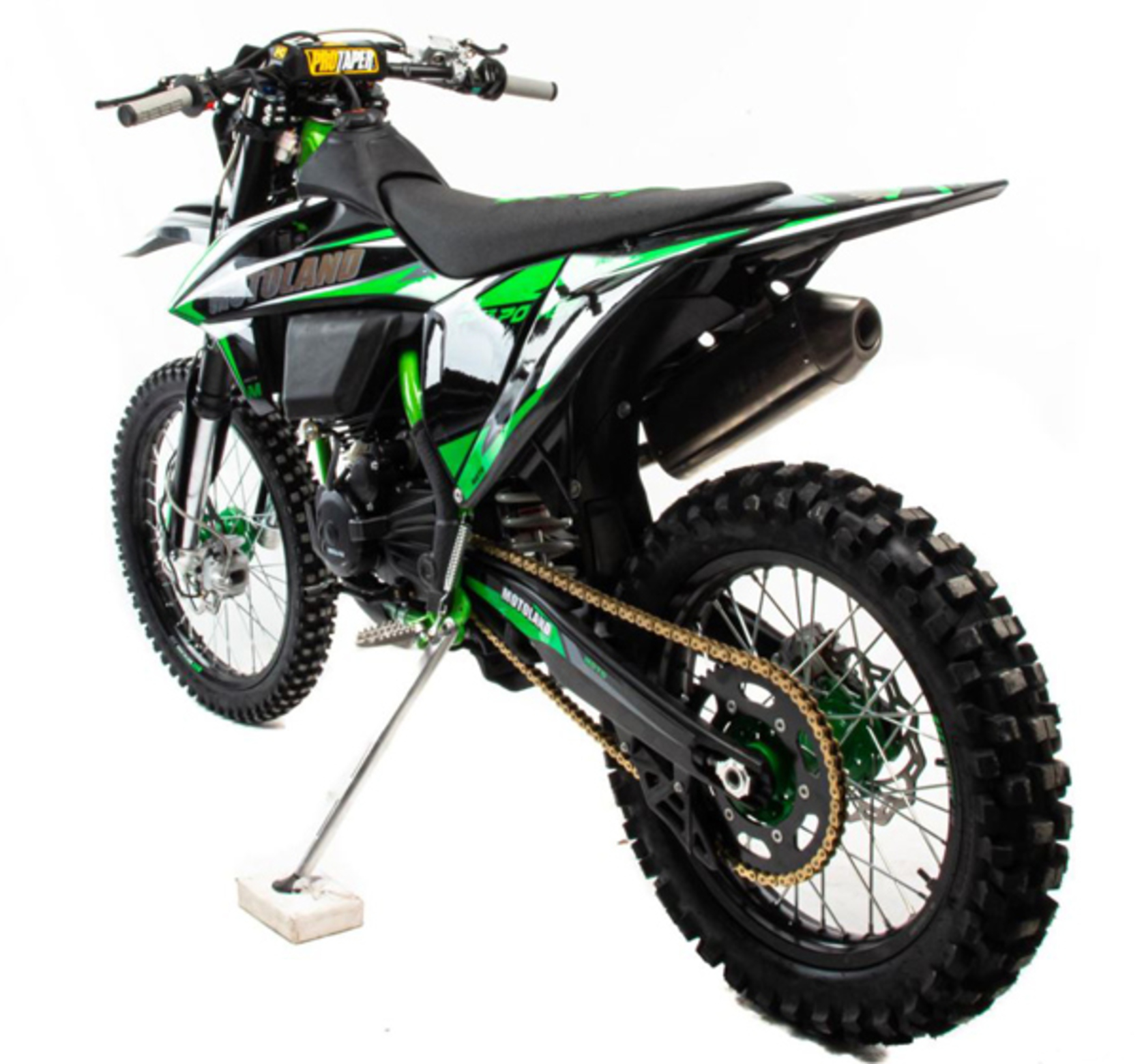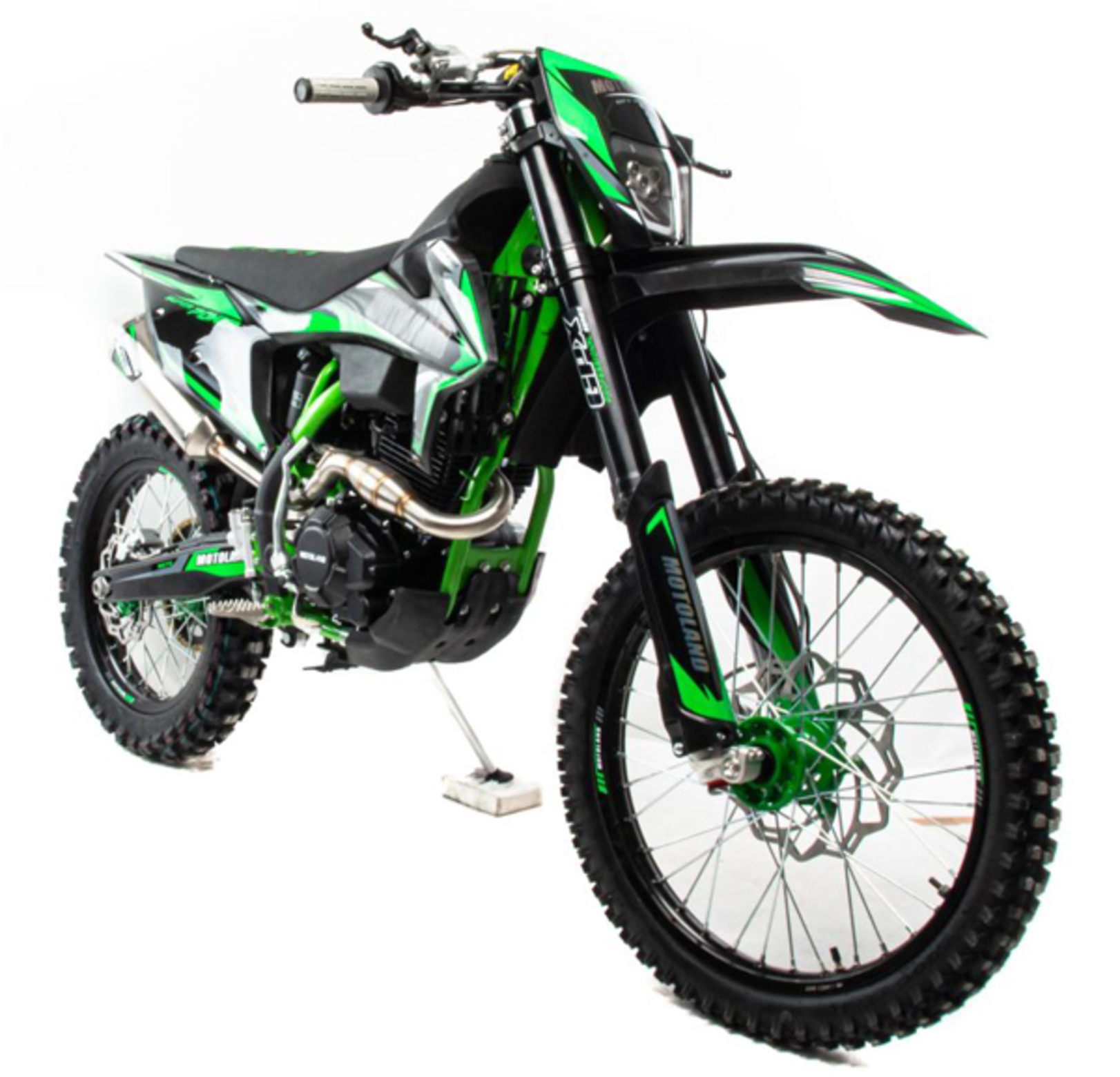 MOTOLAND FX250 - новинка 2022 г. Современный дизайн мотоцикла подчёркивает спортивный характер байка.Установлен мощный двигатель с воздушным охлаждением ZONGSHEN 172FMM-3АБольшой ход подвесок для комфортного передвижения по пересеченной местности, которые также позволяют ехать быстро и агрессивноВысокий вынос руля которые позволяет комфортно ездить в стойке и полностью контролировать мотоциклМотоцикл больше предназначен для езды по переченной местности полям и лесам, чем для города из за профиля резины.Он маневренный и удобный,сидение с противоскользящим чехлом.При этом он прост в управлении и неприхотлив в обслуживании и подходит мотолюбителям любого возраста,и опыта вождения.