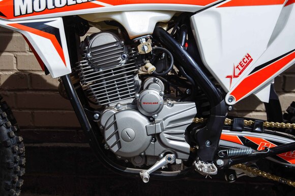 Представляем вам мотоцикл Motoland 250 SX250 . Он подойдет для новичков в мотокроссе и участников любительских соревнований. Колеса диаметром 21/18 идеально подходят для езды по бездорожью, а также по мягкому и средней жесткости грунту. Подвеска GPX позволяет с легкостью преодолевать ухабы, ямы и другие неровности. Мотоцикл оснащен LCD- приборной панелью, прямоточным глушителем, механической пятиступенчатой коробкой передач и двигателем ZONGSHEN 172FMM-3А мощностью 21 лошадиная сила, который способен развивать скорость до 120км/ч. За счет формы, дизайна и цвета пластика SX250 модель внешне похожа на мотоциклы марки KTM. У нас Вы можете купить этот мотоцикл с бесплатной доставкой по РФ и гарантией до года. Также его можно приобрести в рассрочку или в кредит.