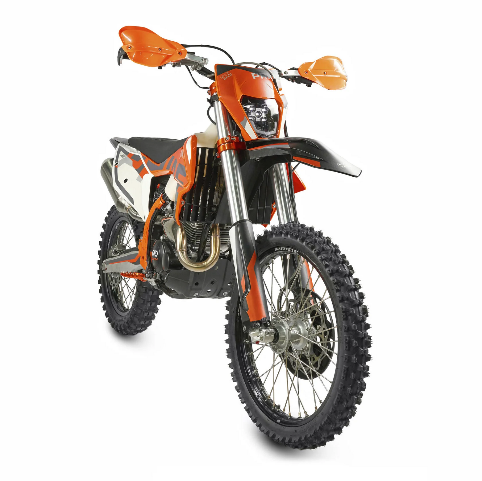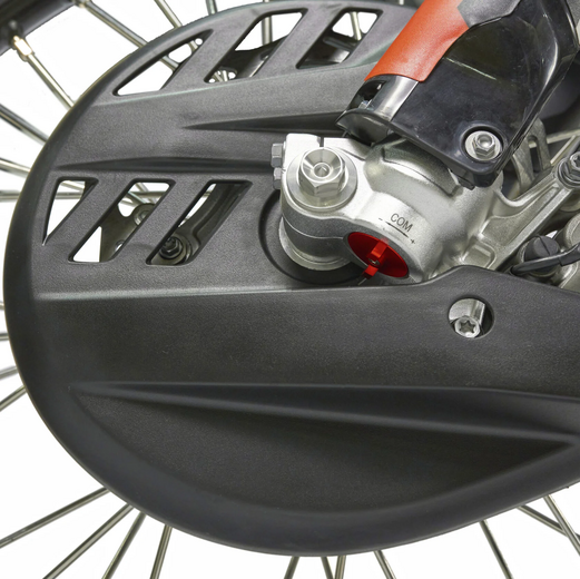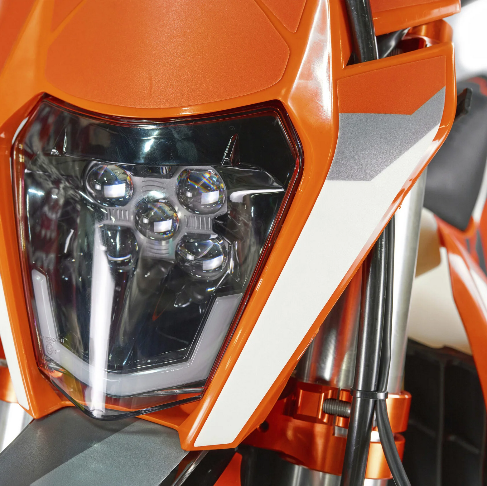 КомплектацияЭлектронная приборная панель, противоскользящее сиденье, защита рамы от протирания ботинками, подножки «AJ1» (алюминий 6063 с шипами), подножка боковая «AJ1» (алюминий 7075-Т6), невозгораемый воздушный фильтр «AJ1» – Twin Air с увеличенной площадью, ведомая звезда «AJ1» (520, алюминий 7075-Т6), защита рук, грипсы OTOM/Lock-On, передние и задние буксаторы «AJ1», откидные алюминиевые рычаги 270, алюминиевая лапка КПП, пульт света КТМ, LED фара 5 линз, моточасы, фрезерованная траверса X trig .ДвигательМодель оснащена надежнейшим 1-цилиндровым 4-х тактным двигателем ZONGSHEN 172FMM-3A с воздушным охлаждением объёмом 249,9 см3, который выдаёт 21 л.с.ПодвескаПередняя вилка "MNT" перевернутого типа T7 48- 910mm с регулировкой на сжатия и отбой. Моноамортизатор "MNT" также с регулировками. Система прогрессии, обеспечивает равномерную, мягкую работу и увеличивает длину рабочего хода подвески. Также ось крепления маятника совпадает с осью крепления ножки. Это существенно улучшает развесовку мотоцикла.КолесаСпереди и сзади установлены антибуксаторы бренда "AJ1", которые притягивают покрышку к ободу, позволяя ездить по бездорожью при низком давлении в камерах, не давая покрышке проворачиваться во время езды. Размер передней покрышки: 80/100 R21. Размер задней покрышки: 120/90-R18. Модель комплектуется "жирной" резиной "KENDA". Все эти характеристики позволяют мотоциклу отлично себя чувствовать в песке и грязи.Тормозная системаПолностью гидравлическая с армированными шлангами. Спереди и сзади установлен двухпоршневой суппорт. Данная конфигурация тормозных механизмов, позволяет быстро и безопасно оттормаживаться даже в самых непростых условиях.Сухой вес мотоцикла 115кг