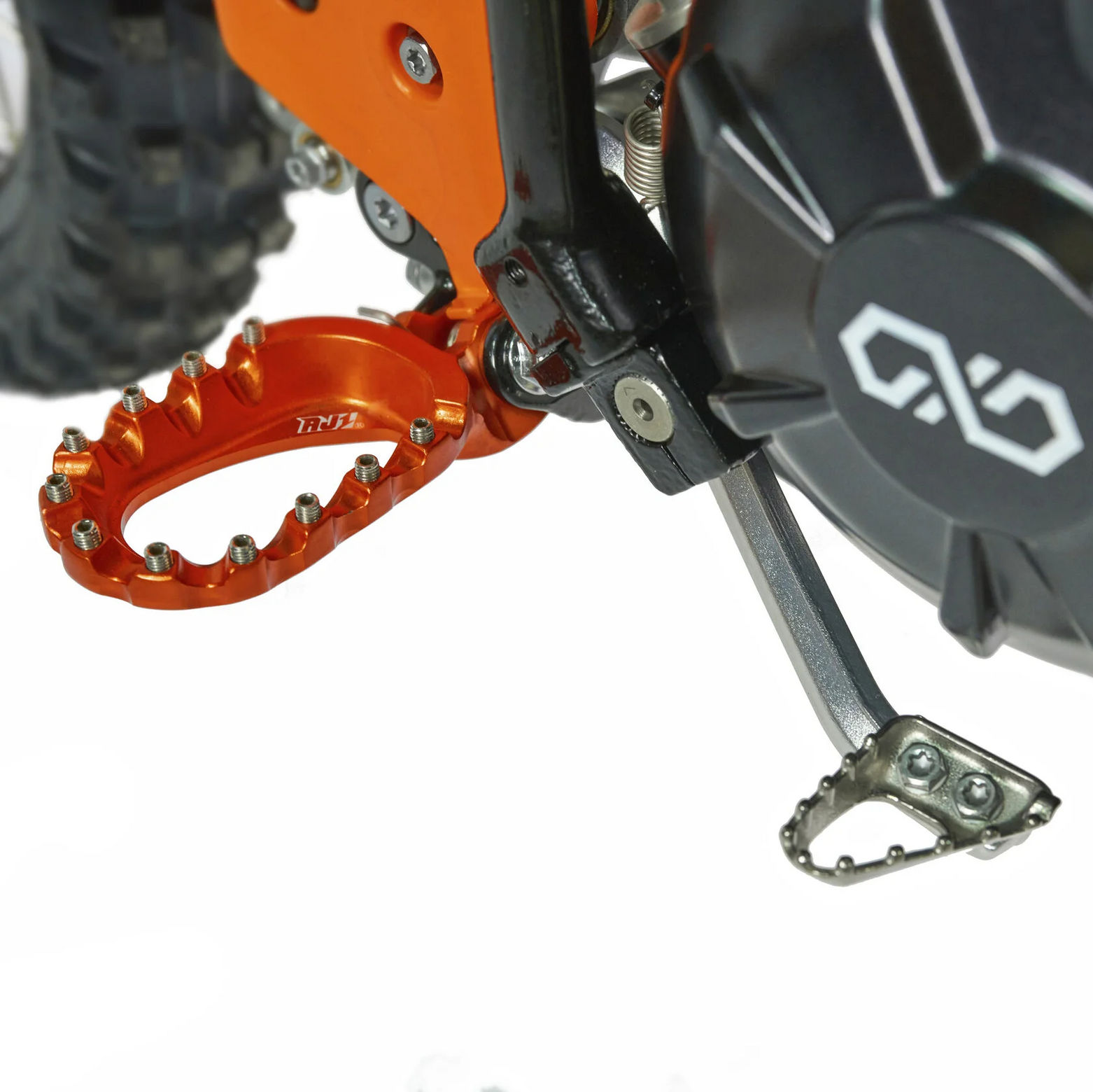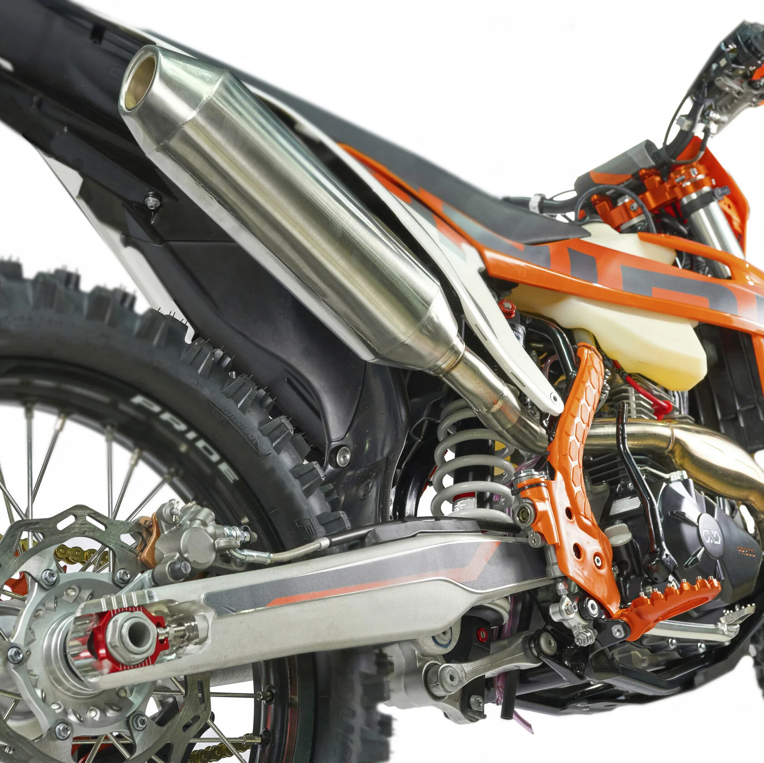 КомплектацияЭлектронная приборная панель, противоскользящее сиденье, защита рамы от протирания ботинками, подножки «AJ1» (алюминий 6063 с шипами), подножка боковая «AJ1» (алюминий 7075-Т6), невозгораемый воздушный фильтр «AJ1» – Twin Air с увеличенной площадью, ведомая звезда «AJ1» (520, алюминий 7075-Т6), защита рук, грипсы OTOM/Lock-On, передние и задние буксаторы «AJ1», откидные алюминиевые рычаги 270, алюминиевая лапка КПП, пульт света КТМ, LED фара 5 линз, моточасы, фрезерованная траверса X trigДвигательМодель оснащена надежнейшим 1-цилиндровым 4-х тактным двигателем ZONGSHEN 175FMN с воздушным охлаждением объёмом 271,4 см3, который выдаёт 25 л.с.ПодвескаПередняя вилка "MNT" перевернутого типа T7 48- 910mm с регулировкой на сжатия и отбой. Моноамортизатор "MNT" также с регулировками. Система прогрессии, обеспечивает равномерную, мягкую работу и увеличивает длину рабочего хода подвески. Также ось крепления маятника совпадает с осью крепления ножки. Это существенно улучшает развесовку мотоцикла.КолесаСпереди и сзади установлены антибуксаторы бренда "AJ1", которые притягивают покрышку к ободу, позволяя ездить по бездорожью при низком давлении в камерах, не давая покрышке проворачиваться во время езды. Размер передней покрышки: 80/100 R21. Размер задней покрышки: 120/90-R18. Модель комплектуется "жирной" резиной "KENDA". Все эти характеристики позволяют мотоциклу отлично себя чувствовать в песке и грязи.Тормозная системаПолностью гидравлическая с армированными шлангами. Спереди и сзади установлен двухпоршневой суппорт. Данная конфигурация тормозных механизмов, позволяет быстро и безопасно оттормаживаться даже в самых непростых условиях.Сухой вес мотоцикла 115кг