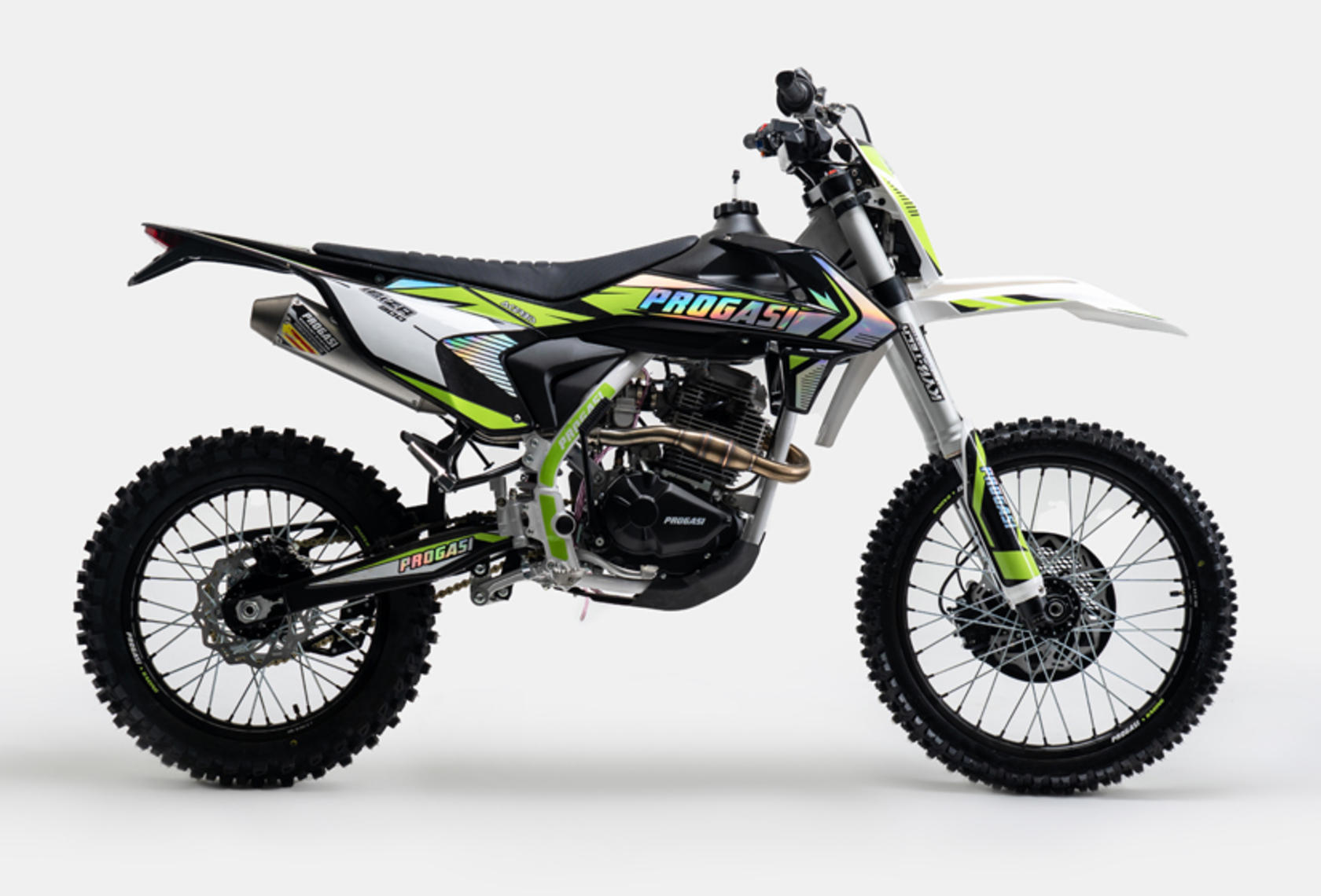 PROGASI Ibiza 300Новая модель популярной Ибицы! Теперь еще больше мощности! Впечатляющая производительность, уверенное управление и покладистый характер делают этот мотоцикл незаменимым для всех, кто серьёзно относится к развлечениям на бездорожье и в грязи. Мотоцикл получил новый двигатель, новый комплект пластика, новую полностью регулируемую подвеску KYB-TECH, новую выхлопную систему, новую фару головного света, задний стоп сигнал, защиту двигателя, USB и многое другое.Сиденье по технологии AcerbisФирменное нескользящее сиденье PROGASI, выполненное по технологии Acerbis anti-slip grip, держит любого райдера как суперклей: специальное ребристое водонепроницаемое покрытие позволяет чувствовать себя комфортно в любых погодных условиях.Дополнительный расширительный бачок тормозовТормоза – это важнейший компонент мотоцикла, от которого напрямую зависит безопасность райдера, а также скорость прохождения поворотов. Для безупречного результата на всех моделях PROGASI установлены дополнительные расширительные бачки и армированные шланги тормозной системы. Спереди установлена 2-поршневая тормозная система и 1-поршневая - сзади.Усиленные ручки тормоза и сцепления с защитой от паденияУсиленная и продуманная конструкция защищает ручки от повреждений, складываясь в случае удара. Также использована геометрия легкого выжима.Проверенное качествоВсе мотоциклы PROGASI имеют Европейский сертификат качества. С завода залито масло Shell 10w40. Применяются влагозащищенные разъемы проводки. Все подшипники обработаны специальной консистентной смазкой. «Details matter» (“Детали имеют значение”) - слоган рожденной в Каталонии компании PROGASI.