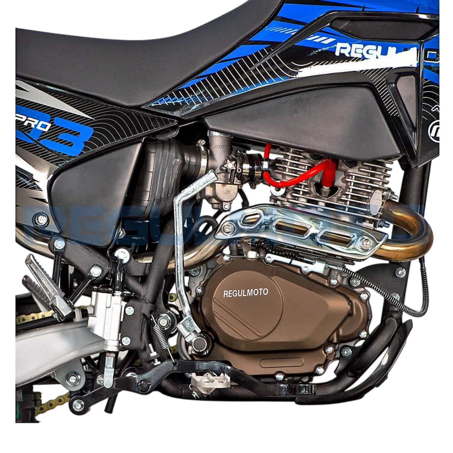 Обновленный «Легендарный» мотоцикл Regulmoto Sport 003 Pro 2024 года с невероятными улучшениями! Новый четырехклапанный двигатель от Zongshen, с балансирным валом и пятью передачами, обеспечивает мощный и плавный ход. Карбюратор Nibbi PE30 обеспечивает идеальную подачу топлива для оптимальной производительности.Этот мотоцикл также оснащен новыми амортизаторами с полной регулировкой сжатия и отбоя, обеспечивая комфорт и уверенное вождение на любой местности. Полые оси колес значительно уменьшают вес мотоцикла, способствуя улучшенной маневренности.Дополнительные особенности включают складные эндуро зеркала, крепление звезды на 6 болтах, сальниковую 520 цепь, LED-освещение (включая указатели поворотов и фару), а также шины аналогичные Mitas спереди C19 размерностью 90/90-21, сзади мягкая шина, аналог Mitas 754 с размерностью 120/90-18. Этот мотоцикл - идеальный выбор для профессиональных райдеров, которые стремятся к безупречной производительности и надежности. Представьте себе возможности, которые откроются перед вами с обновленным Regulmoto Sport 003 Pro!
