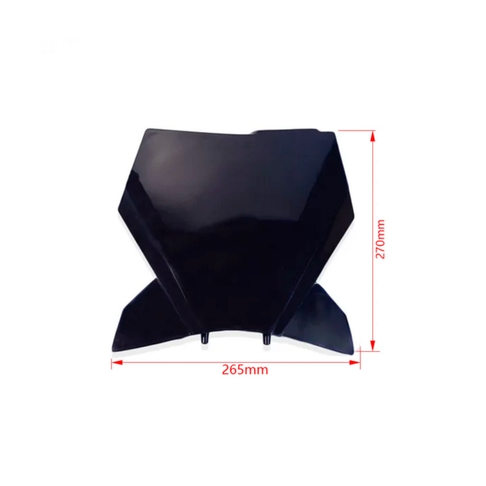 Передний номерной щиток для современных эндуро и кроссовых мотоциклов с пластиком типа KTM 2024 года. Оригинальная геометрия и универсальный чёрный цвет для стильного внешнего вида и надёжности. Выполнен из прочного УФ-стойкого ABS-пластика.