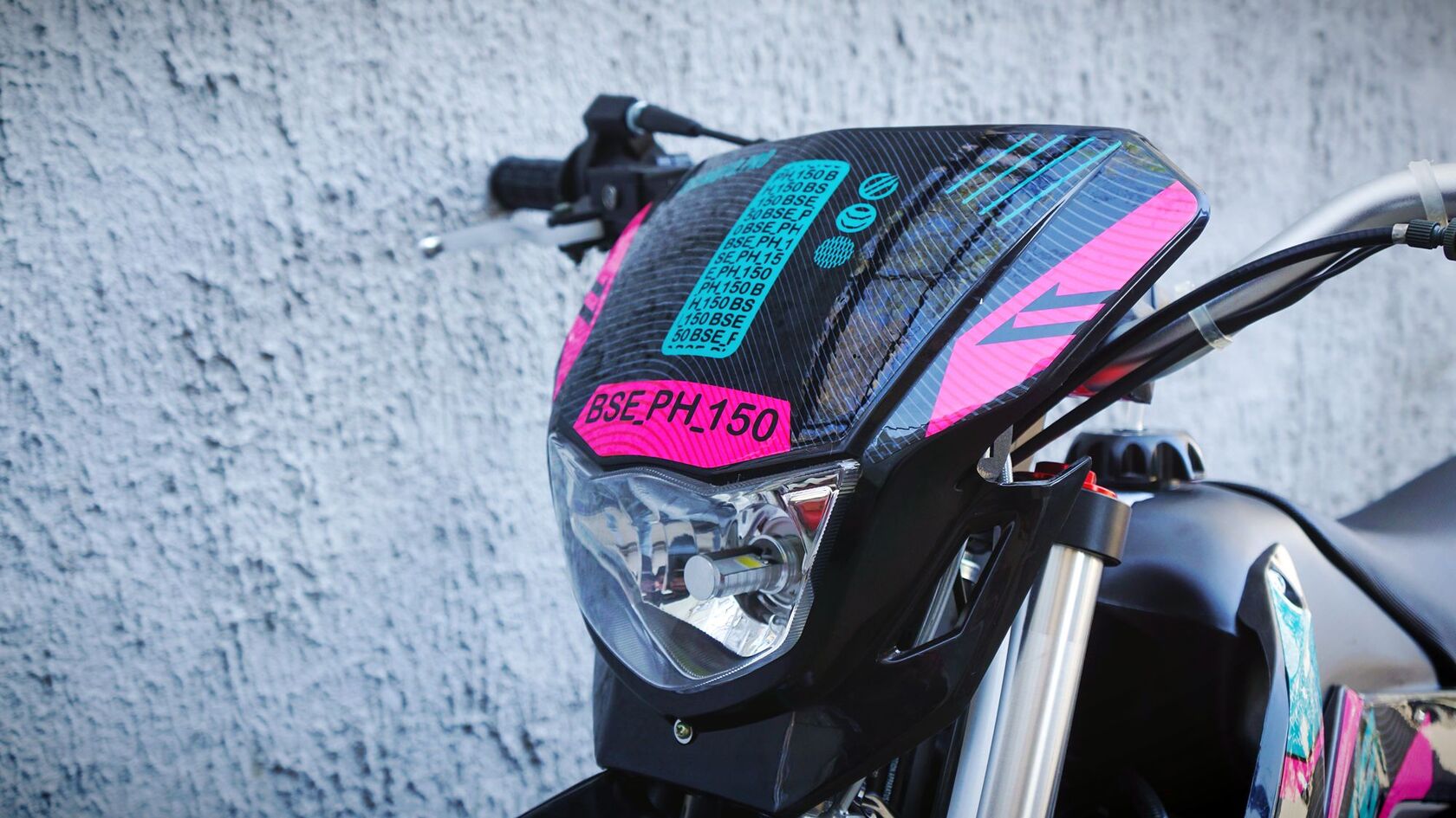 BSE PH150 – король питбайков в линейке BSE.PH150 на колесах 17/14 оснащен самым мощным двигателем среди питбайков BSE и самой богатой комплектацией.Основа PH150 - рама из хромомолибденовой стали повышенной жесткости с литыми усилителями — фирменный знак качества завода BOSUER! Силовая установка питбайка — надежный и тяговитый 4-тактным двигателем YX объёмом 150 см3 с воздушным охлаждением. Максимальная мощность – внушительные 15 л.с. Питает мотор карбюратор MIKUNI VM26. Питбайк оснащен 4-ступенчатой механической трансмиссией. Запуск мотора осуществляется при помощи электростартера или кик-стартера. Подвески с большими ходами: передняя — телескопическая вилка перевёрнуто типа, задняя — моноамортизатор.LED фара головного света, "злая" резина, мощная тормозная система HSK Racing, японские колесные подшипники NTN, защита мотора, руль ProTaper - питбайк полностью укомплектован всем необходимым для покатушек и гонок.PH150 – профессиональный выбор самого продвинутого "питбайкера".