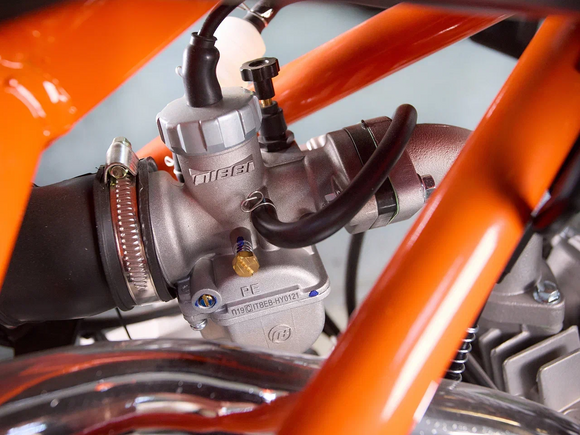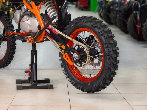 Питбайк KAYO Evolution YX140EM 17/14 KRZ – отличный снаряд для внедорожного экстрима, который подходит как новичкам, так и опытным райдерам. Это удобный, простой и надёжный мотоцикл, полностью оправдывающий свою цену.Оснащён одноцилиндровым 4-тактным двигателем YX1P56FMJ объёмом 140 см3 с воздушно-масляным охлаждением. Выдаёт мощность в 11 л.с. Карбюратор NIBBI PE19 обеспечивает бесперебойную работу техники в самых жёстких условиях. Лёгок в обслуживании и неприхотлив к качеству топлива. Имеет механическую коробку передач с 4 ступенями и схемой N-1-2-3-4. Лапка у КПП складная. Запуск двигателя осуществляется с помощью кнопки на руле или рычага кикстартера. Ёмкость бака 5,7 литра.Руль и колёса выполнены из прочного алюминиевого сплава. Колёса имеют диаметр 17 и 14 дюймов и обуты в агрессивную кроссовую резину. Подвеска спереди представлена телескопической вилкой перевёрнутого типа длиной 770 мм, а сзади – моноамортизатором длиной 360 мм. Тормоза дисковые гидравлические.Размер 1850х850х1290 мм, вес 78 кг. Высота по седлу 885 мм.Мотоцикл оснащён светодиодной оптикой, позволяющей устраивать заезды даже в тёмное время суток.