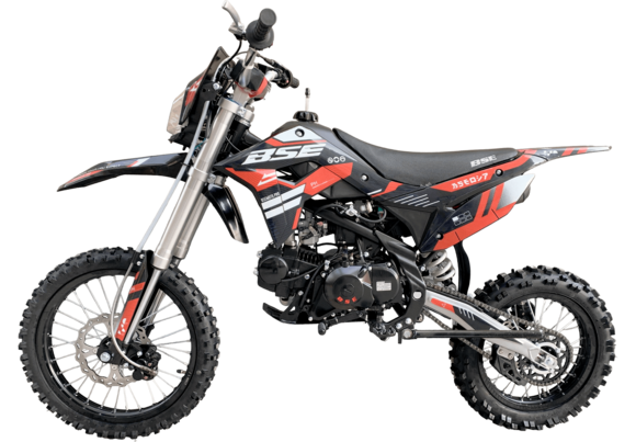 Питбайк BSE PH125 на колесах 17/14 дюймов – один из самых популярных, надежных и продаваемых питбайков 125 куб см среди китайских производителей! Этот классический питбайк объёмом 125 см3 обладает рядом модификаций и полезных усовершенствований, которые дополняют его функционал и отличают от конкурентов. PH125 оснащен колесами классическим для питбайка размером колес 17/14. Основа PH125 - рама из хромомолибденовой стали повышенной жесткости с литыми усилителями - фирменный знак качества завода BOSUER! Cиловая установка питбайка – надежный, тяговитый и мощный 4-тактный двигатель Zonghshen 125 куб см с воздушным охлаждением и мощностью 10 лс. Питает мотор карбюратор Jingke PZ 26. Питбайк оснащен 4-ступенчатой механической трансмиссией. Запуск мотора осуществляется при помощи электростартера или кик-стартера. Подвески с большими ходами: передняя - телескопическая вилка перевёрнуто типа, задняя- моноамортизатор. "Злая" резина, Мощная тормозная система HSK Racing, японские колесные подшипники NTN, усиленная цепь 428 Gold, защита мотора - питбайк полностью укомплектован всем необходимым для покатушек и гонок.