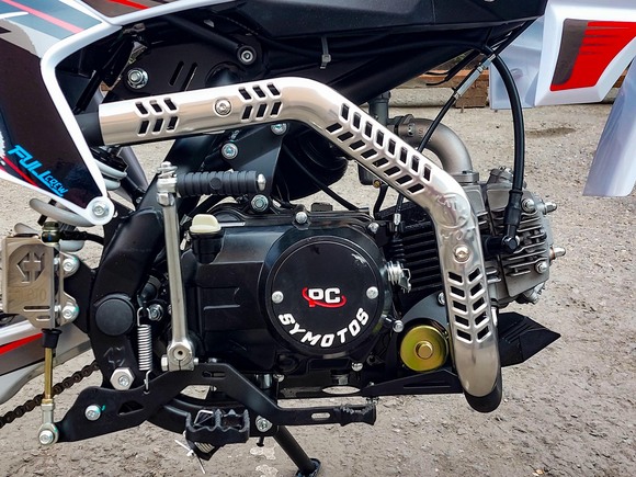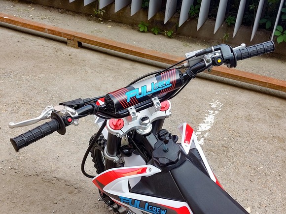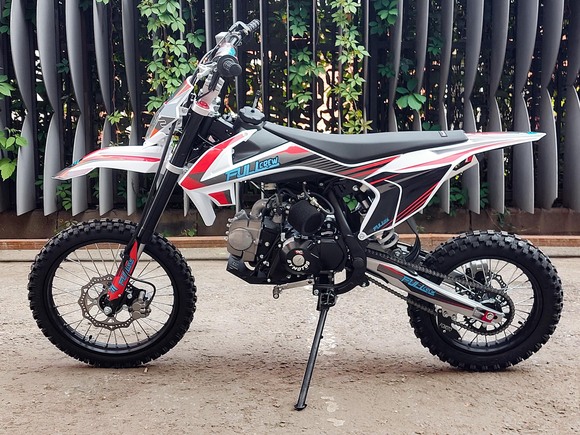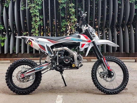 Питбайк Full Crew FC125e отлично подходит для пробующих мотоспорт – резвый мотор на 125 кубов с 9 лошадиными силами прекрасно работает с механической коробкой. Охлаждение воздушное – простая конструкция облегчает ремонт и удешевляет обслуживание. Для начинающих эта модель особенно интересна еще и из-за цены – можно основам научиться на нем с перспективой пересесть в дальнейшем на что-то более серьезное.Рама стальная усиленная, конструкция обеспечивает высокую удобную посадку, а подвеска (передняя перевернутая вилка и задний моноамортизатор) обеспечивает мягкое движение по кочкам, оврагам, деревьям и прочим всевозможным преградам на дикой трассе. Гидравлические тормоза работают надежно и четко.Из дополнительных приятных «плюшек»:- рычаги сцепления и тормоза откидываются;
