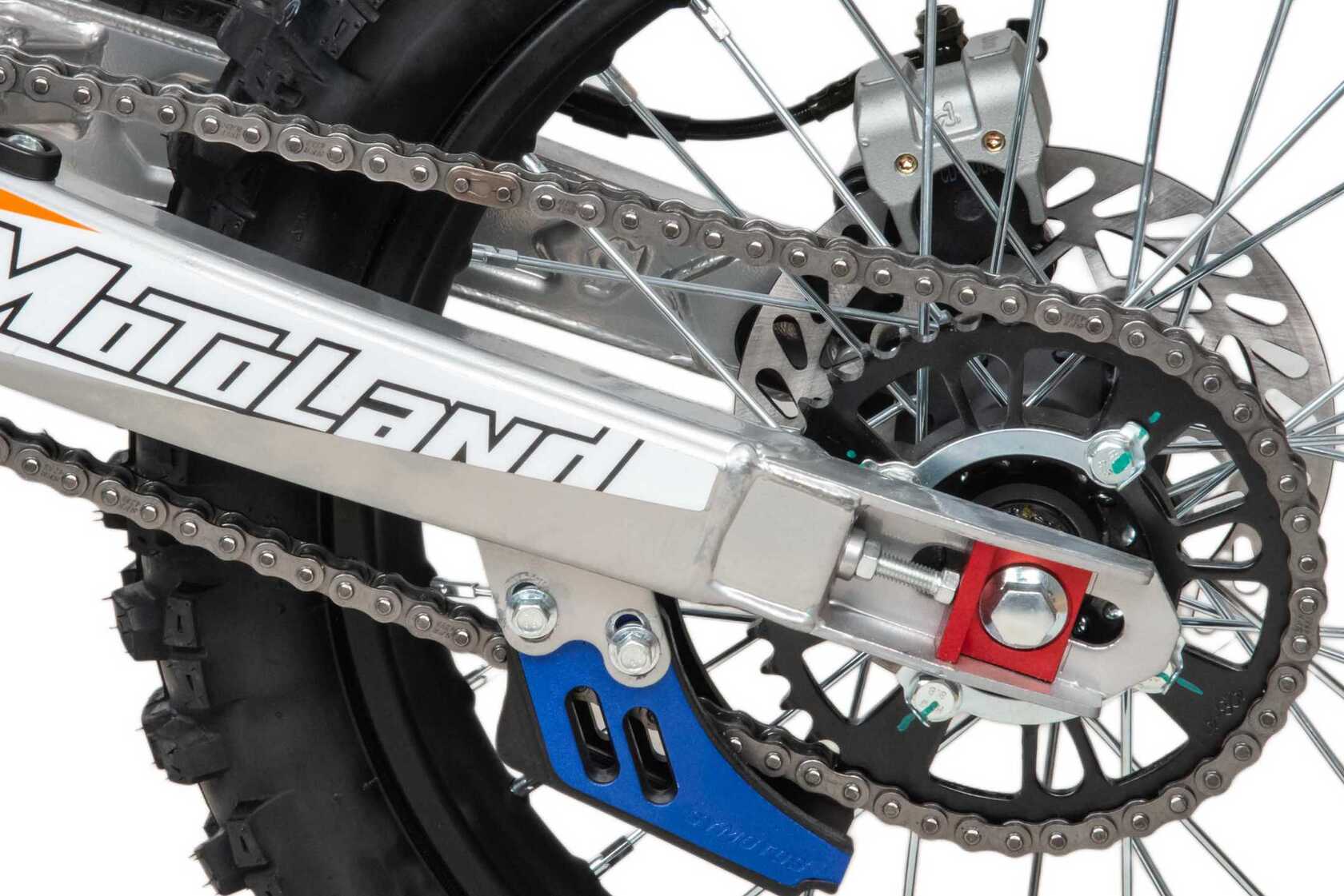 Встречайте долгожданную новинку SX на 140 куб. Питбайк Motoland SX 140 E 19/16 идеален для поездок по грунтовым дорогам и бездорожью. Хорошо чувствует себя на мягком и среднем грунте, разгоняется до 90 км/ч. Оснащён спортивными траверсами и амортизаторами с регулировкой. весит всего 75 кг.Питбайк прост в управлении и не требует специального ухода, подойдёт как новичкам, так и любителям мотокросса.У питбайка отличный узнаваемый дизайн. Конструкция подчёркивает неуступчивый спортивный характер, который не остановится ни перед одним препятствием.Комбинированный прочный пластик не ломается при сгибании.Передняя подвеска — телескопическая вилка перевёрнутого типа с регулировками, которая отлично подходит для преодоления ям, и других неровностей плохих дорог или их отсутствия. Задняя подвеска маятниковая с моноамортизатором тоже с регулировкой.Питбайк оснащён карбюратором NIBBI PE 22 и одноцилиндровым четырёхтактным двигателем с воздушно-масляным охлаждением. Надёжный мотор 156 FMJ