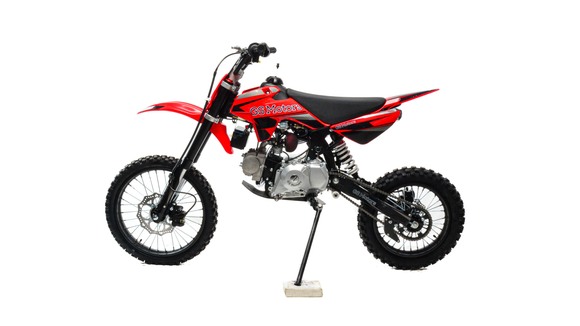 Питбайк GS Motors S12 17/14 идеален для поездок по грунтовым дорогам и бездорожью. Хорошо чувствует себя на мягком и среднем грунте. Питбайк прост в управлении и не требует специального ухода, подойдёт как новичкам, так и любителям мотокросса. Конструкция подчёркивает неуступчивый спортивный характер, который не остановится ни перед одним препятствием. Пластик комбинированный, прочный, не ломается при сгибании. Передняя подвеска — телескопическая нерегулируемая вилка перевёрнутого типа, которая отлично подходит для преодоления ям, ухабов и других неровностей плохих дорог или их отсутствия. Задняя подвеска маятниковая с моноамортизатором. Руль 22 мм с высоким подъёмом и перекладиной удобен для мотоциклистов разного роста.Питбайк весит всего 75 кг, выдерживает вес до 90 кг. Оснащён CNC траверсами, рама полудуплексная стальная, мотоцепь качественная. Колёса спицованные, металлические. Размер заднего колеса — 14 дюймов, переднего — 17 дюйм. Тормоза дисковые, передний тормозной суппорт двухпоршневой, задний — однопоршневой. Питбайк оснащён карбюратором JINGKI и одноцилиндровым четырёхтактным двигателем с воздушным охлаждением. Надёжный мотор 1P54FMI мощностью 8 л. с. и объемом 125 см³ разгоняет питбайк до 90 км/ч. Коробка передач механическая, четырёхступенчатая. Система зажигания электронная (CDI). Запуска двигателя - кикстартер / электростартер.Покрышки с шипами и высоким грунтозацепом идеальны для бездорожья. Мощность мотора и небольшой вес питбайка позволяют ему преодолевать значительные препятствия и непролазную грязь, хорошо заходить в подъёмы.