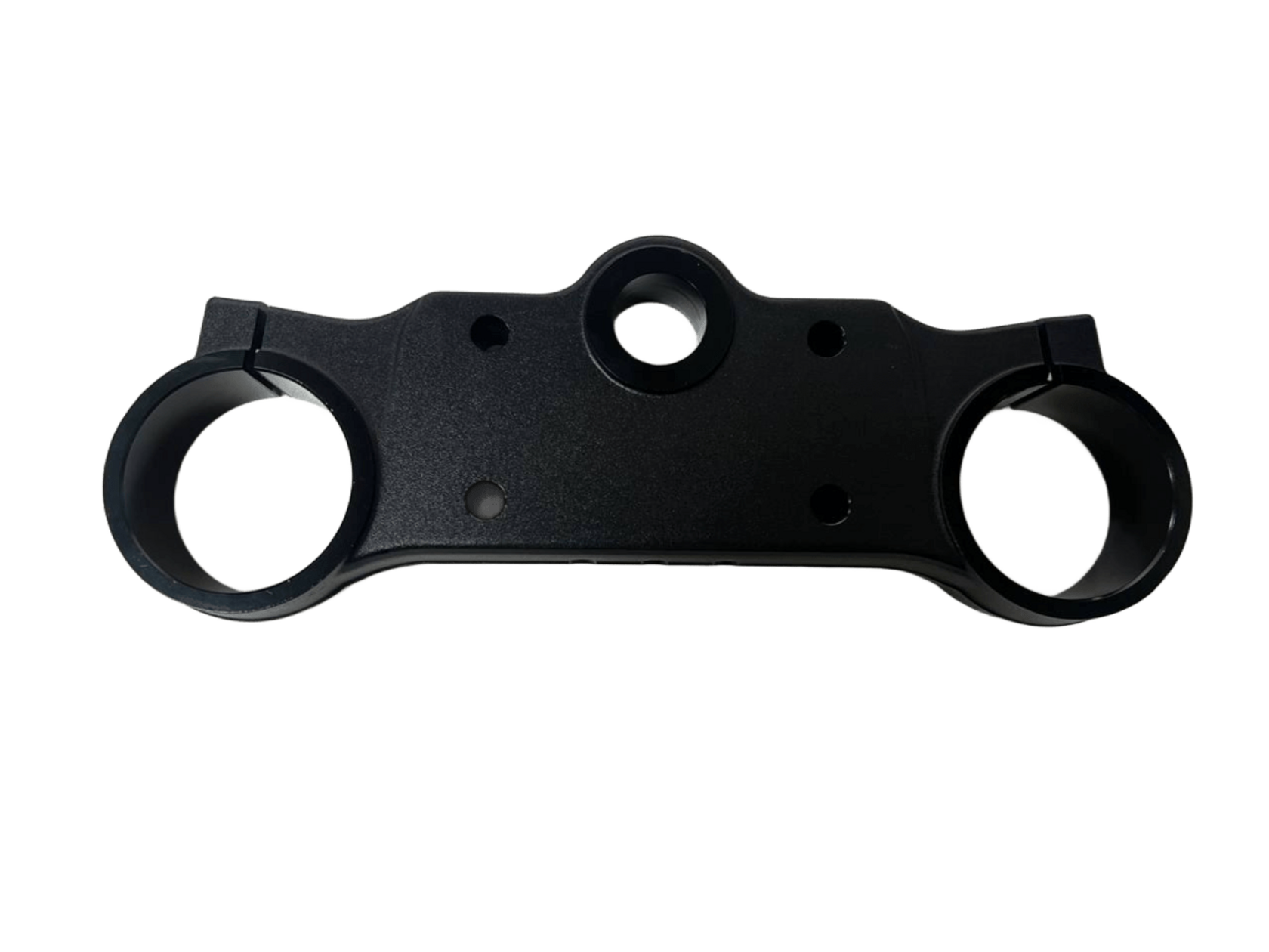 Алюминиевая верхняя траверса рулевой колонки для питбайков и эндуро мотоциклов. Обеспечивает жёсткое и точное крепление рулевой стойки, гарантируя надёжную управляемость и стабильность на любой скорости. Матовый чёрный цвет придаёт эффектный внешний вид и дополнительно защищает от коррозии. В комплекте поставляется только верхняя часть траверсы.
