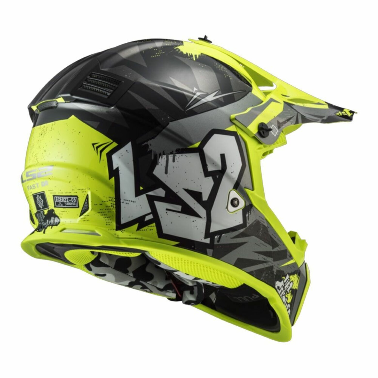 Шлем LS2 MX437 FAST EVO MINI CRUSHER Black Hi-Vis Yellow L