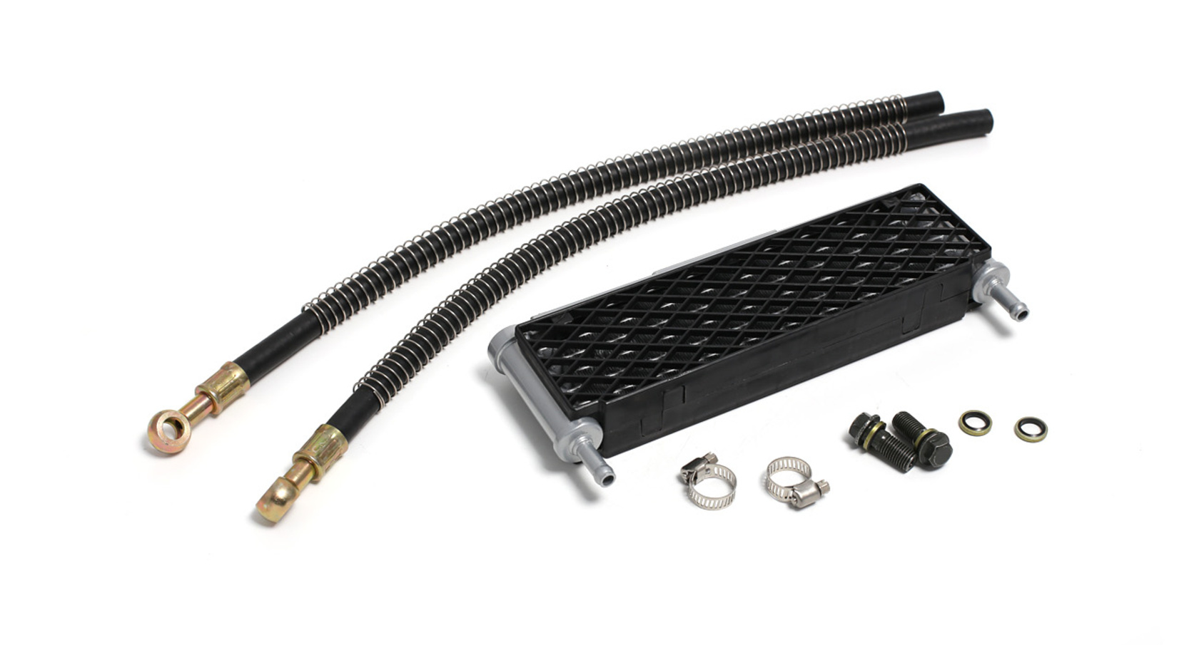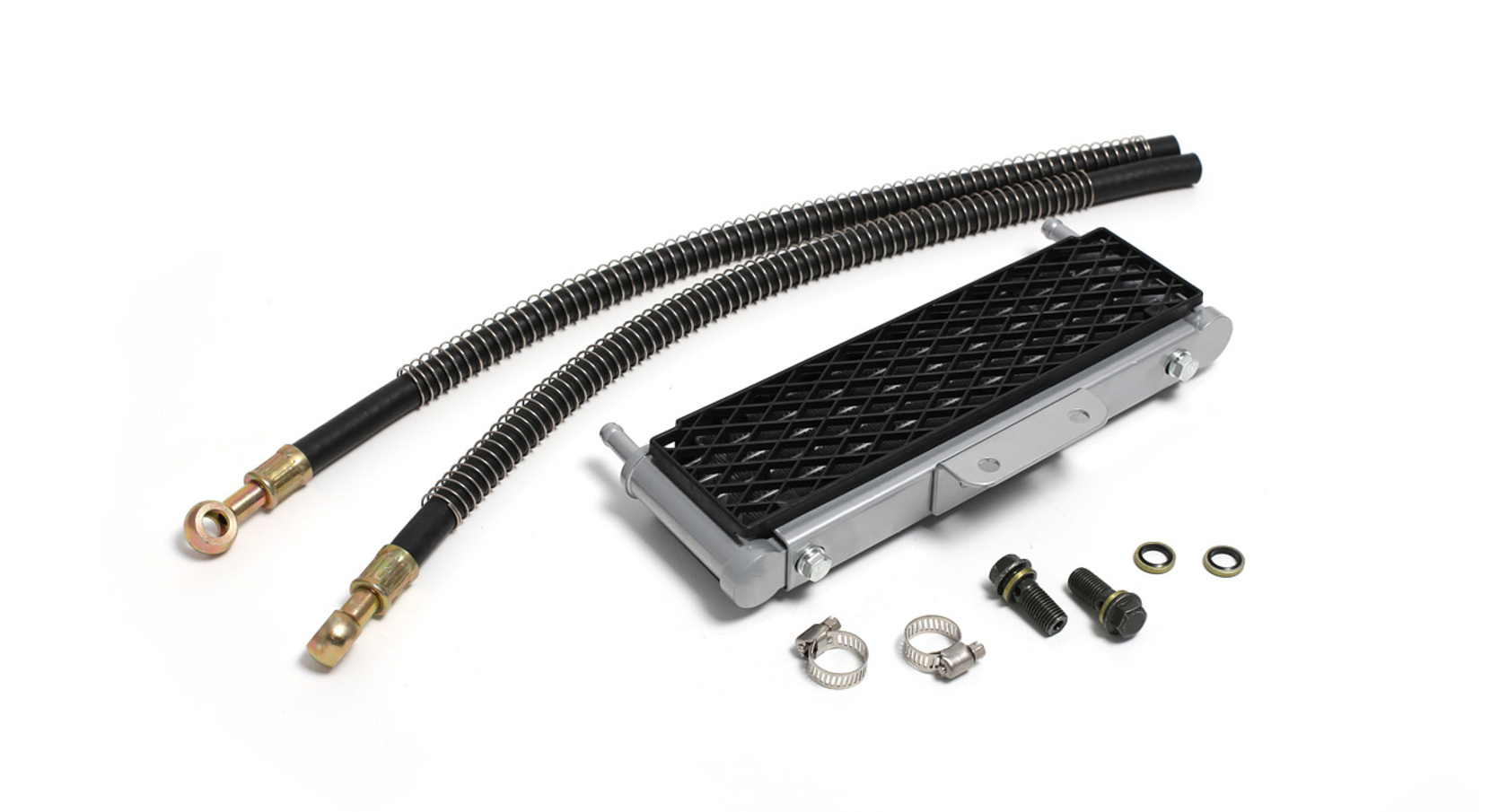 Широкий алюминиевый радиатор в сборе с шлангами — оптимальное решение для охлаждения высокооборотистых двигателей питбайков объёмом от 140 см³. Подходит для моделей YX140, YX140E, YX150E, YX150-5, YX150/160, ZS155/160/190E и большинства современных питбайков. Радиатор оборудован пластиковыми решётками с обеих сторон для защиты от камней и веток. Крепление осуществляется пластиной с двумя отверстиями, расстояние между центрами — 45 мм. Для подключения шлангов необходимы банжо-болты 10×1,25.