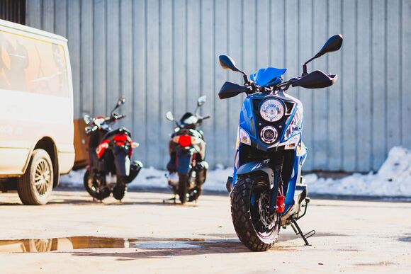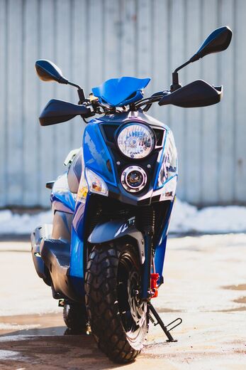 Скутер SYM CROX 125 Ярко Синий/ Матовый Темно-Серый + мотошлем SYM серый