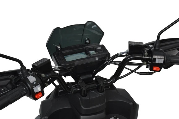 Скутер Motoland Tank - отличный вариант для загородных поездок и рыбалки: имеет множество дополнительных защит и закрытий, колеса 12" с резиной для поездки по грунтовой дороге и асфальту.Брутальный внешний вид и черный цвет делает его не похожим на другие скутера. Дополнительные ДХО, светодиодные поворотники и стоп-сигнал.На скутере установлен одноцилиндровый четырехтактный двигатель 157 QMJ мощностью 10 л/с и рабочим объемом 150 см3 с принудительным охлаждением, что позволяет ему не перегреваться даже в сильную жару. Система запуска кикстартер + электростартер. Трансмиссия - вариатор, не требующий манипуляциях с переключением скоростей. Это очень удобно при эксплуатации и не вызывает сложностей, просто сел, повернул ручку газа и поехал. Все тормоза - дисковые гидравлические.Подвеска - передняя вилка телескопическая и два задних амортизатора. Колесные диски литые алюминевые, на которые установлены качественные покрышки 120/70-12".Выдерживает нагрузку до 150 кг, что позволяет перевозить одного пассажира. Под сиденьем есть большое багажное отделение + площадка для крепления дополнительного кофра. Приборная панель — электронная, с очень крупными, легко читаемыми цифрами и часами; со всеми необходимыми указателями.Габариты: 1900 х 710 х 1170 мм. (без учета зеркал)